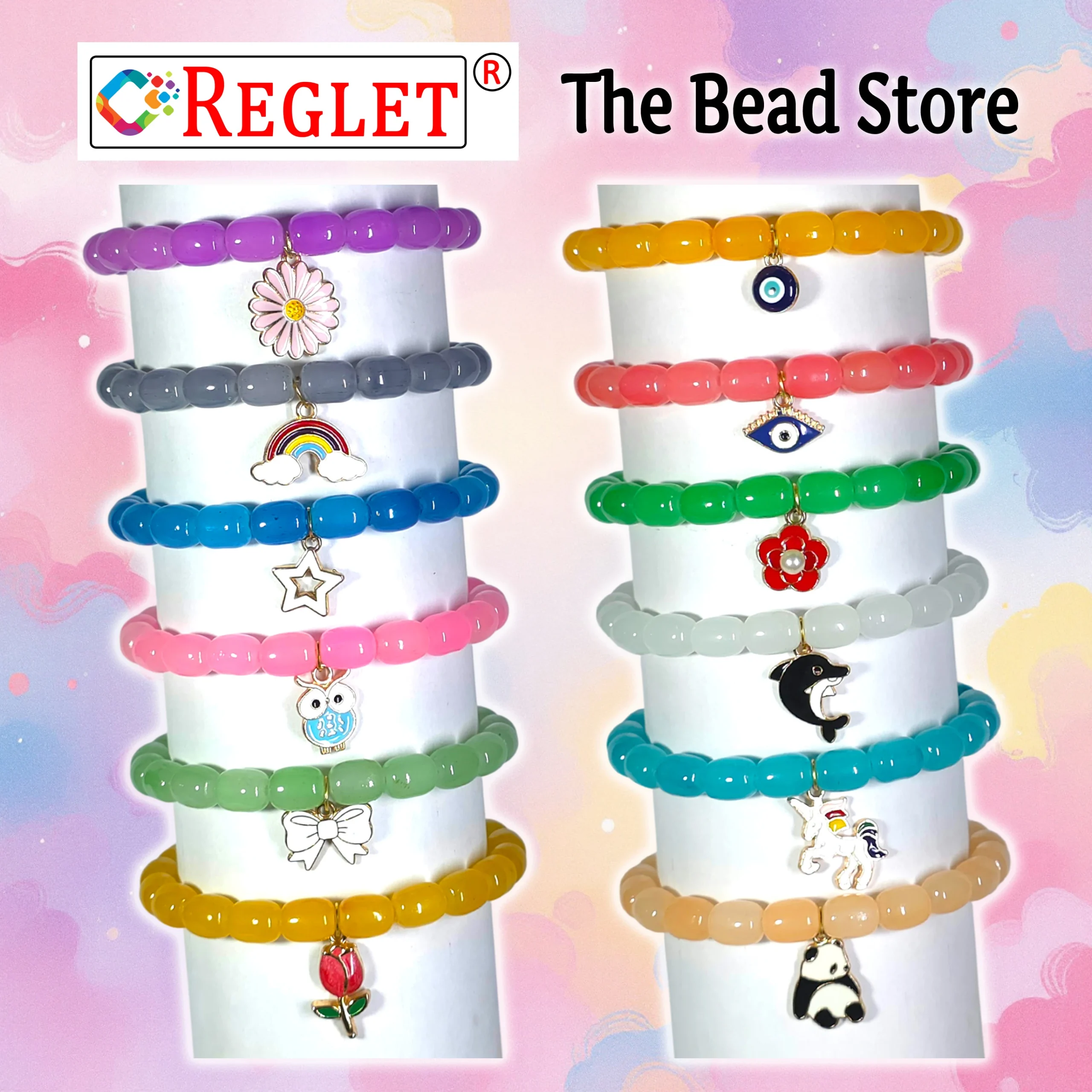 REGLET 10 Pcs Charms + 215 Pcs Cylinder Glass Beads Kit is a versatile set designed for jewellery making, crafting, and DIY projects. It includes 215 pieces of 8x11mm crystal glass beads in 12 beautiful colours, with 18 beads per colour, 20 grams each, totalling 240 grams. Along with 10 stylish charms, this kit provides everything you need to create stunning bracelets, necklaces, earrings, and other bead crafts. The beads are made of premium-quality crystal glass with a smooth, glossy finish, ensuring durability and elegance in every design. Ideal for both beginners and experienced jewellery makers, this kit also makes a wonderful gift for women and girls who enjoy creativity and handmade art.
