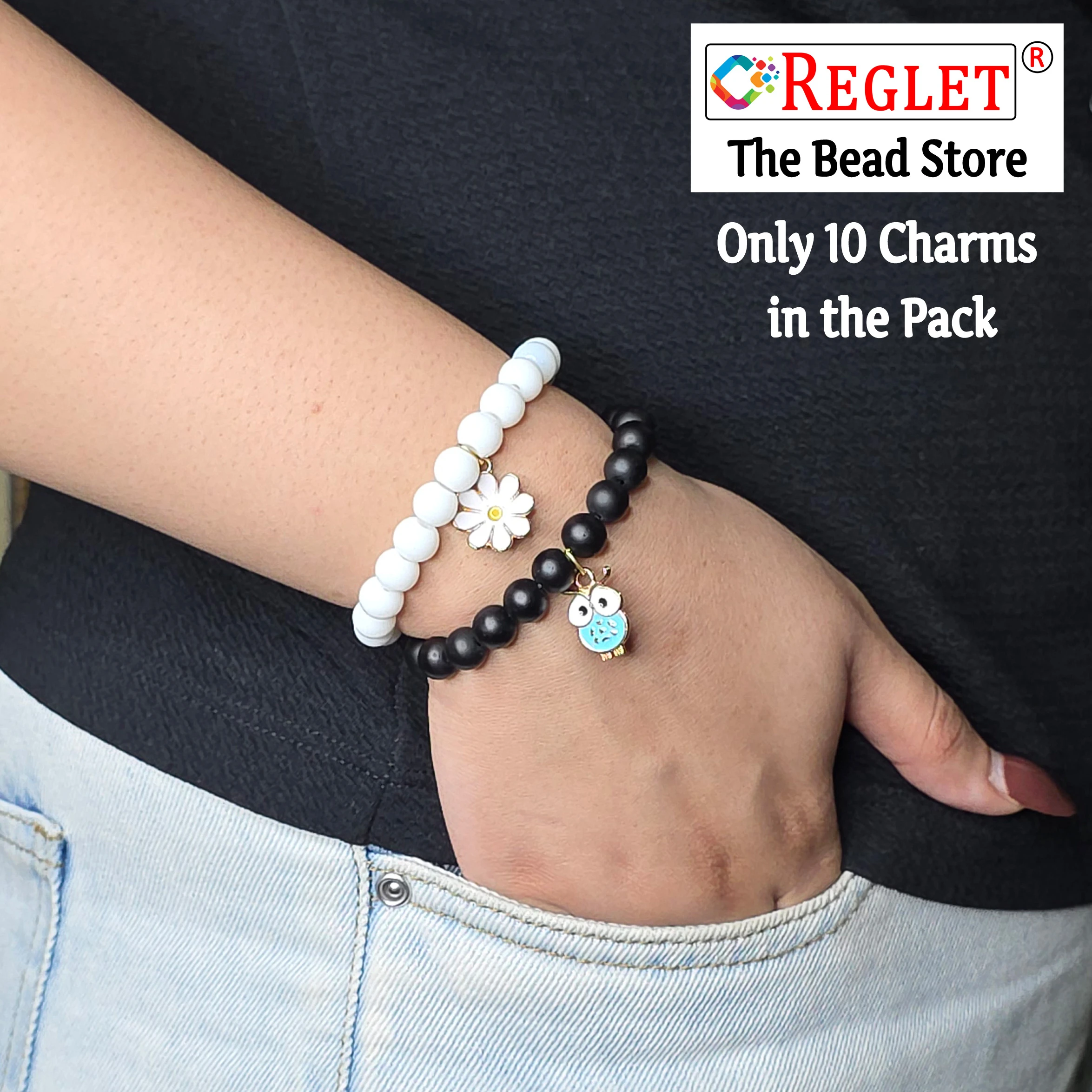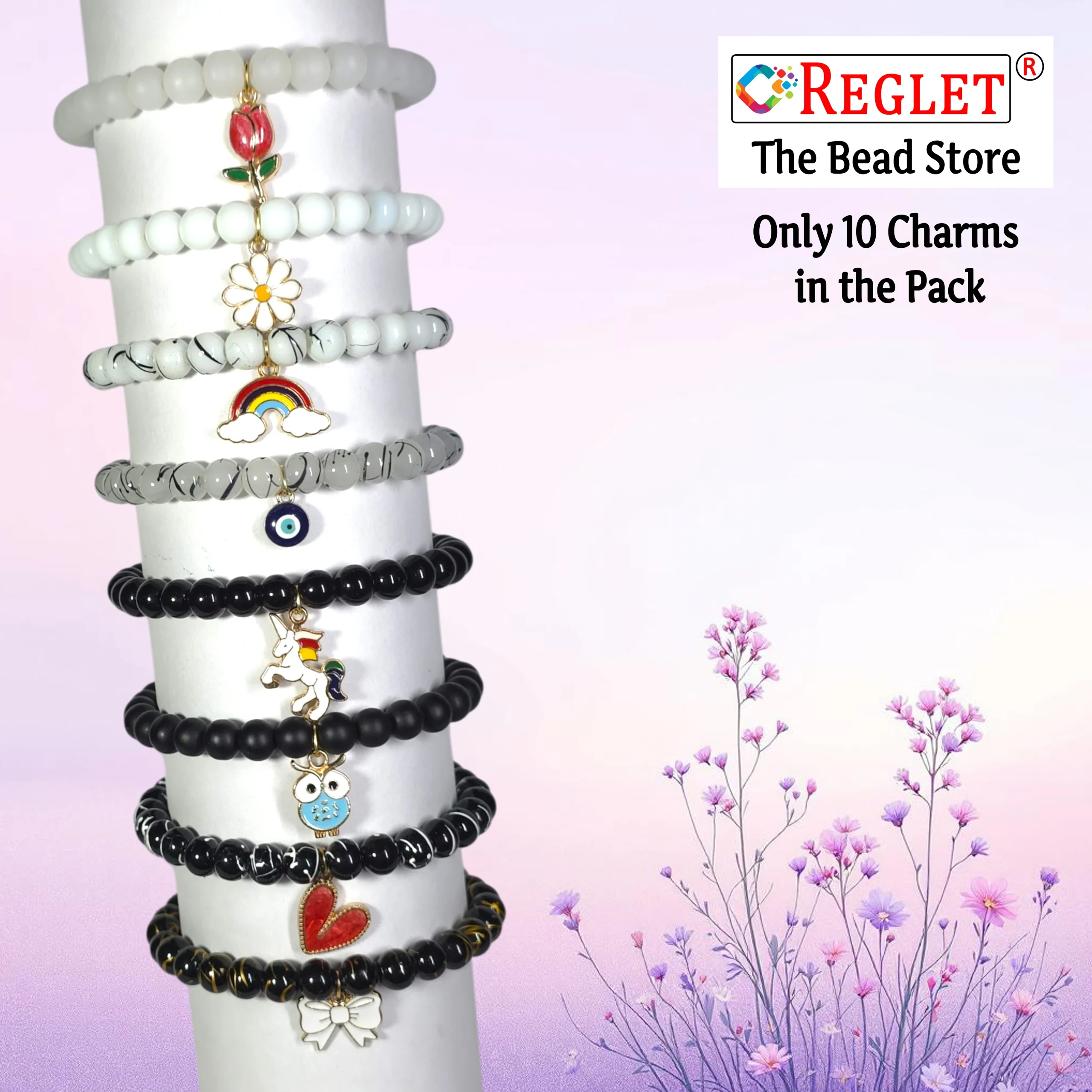 10 Pcs Charms + 225 Pcs Black & White Glass Beads for Bracelet Making Kit