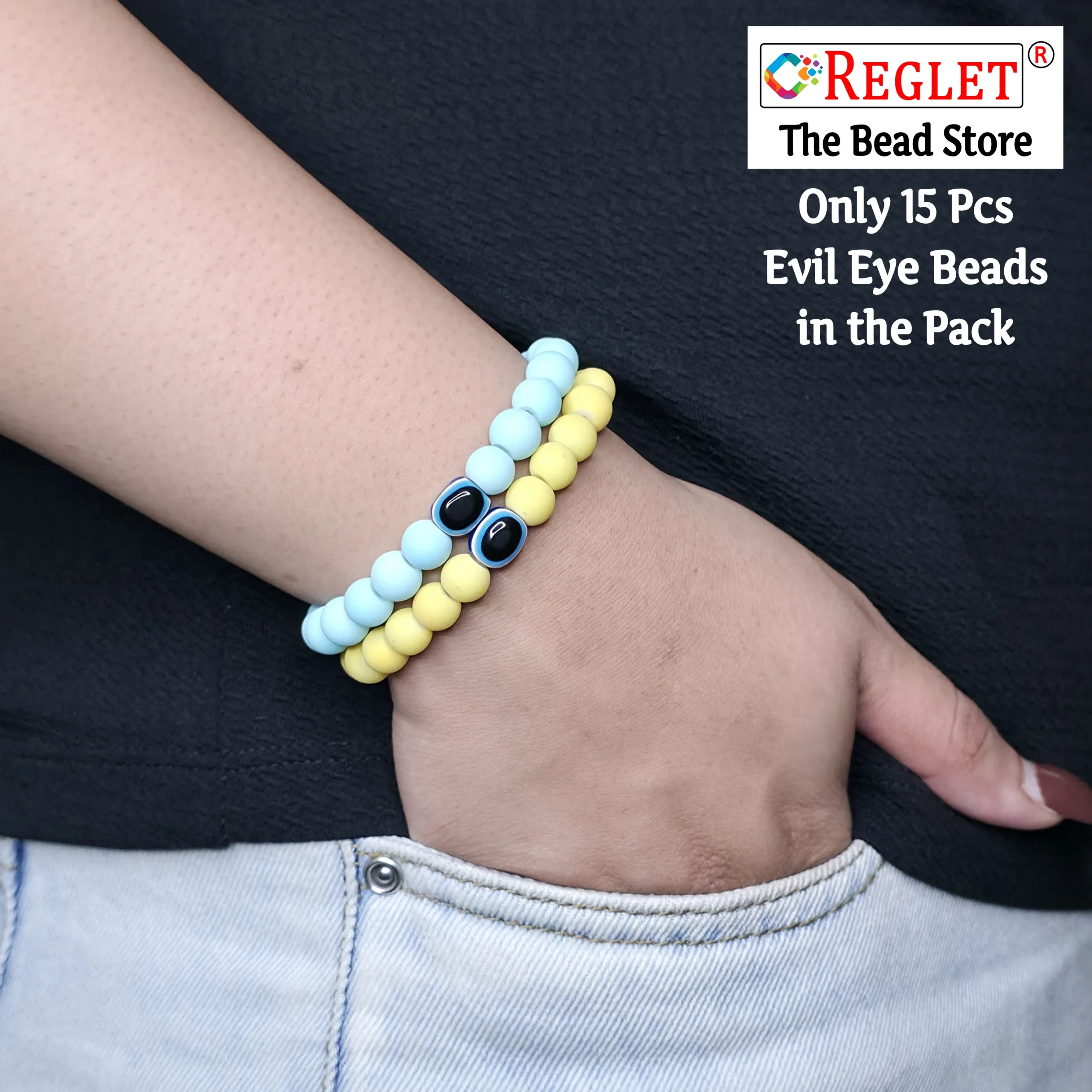 15 Pcs Evil Eye Beads + 225 Pcs Pastel Glass Beads for Bracelet Making Kit