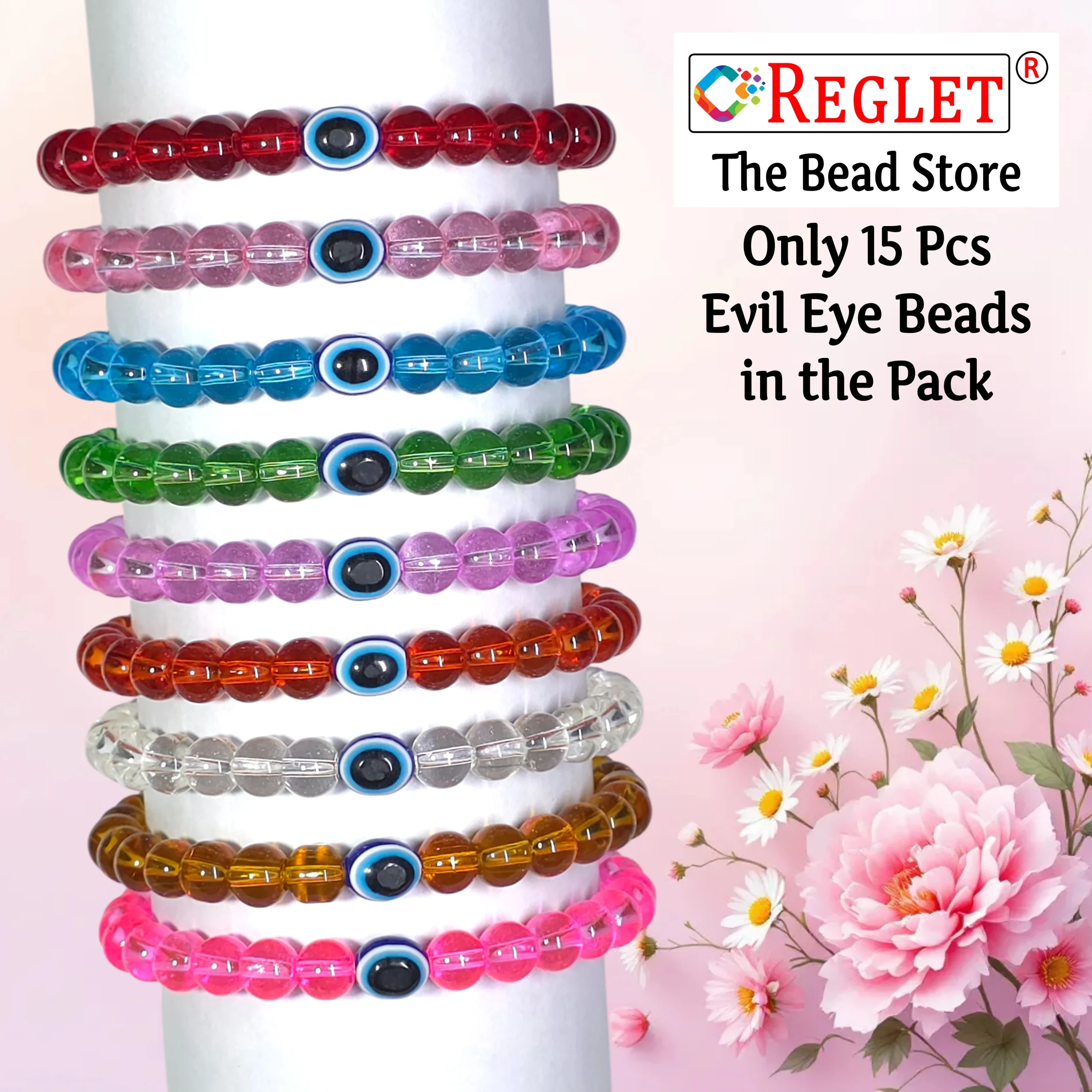 The REGLET 15 Pcs Evil Eye Beads + 250 Pcs Crystal Glass Beads Bracelet Making Kit is perfect for women who love meaningful and creative jewellery crafting. The kit features 250 premium 8mm crystal glass beads in 9 beautiful colours (20g each, around 28 pcs per colour) and 15 Evil Eye beads that symbolize protection and good energy. Also included is a 5-metre elastic thread for comfortable, flexible designs. Each bead is crafted from high-quality glass with a glossy finish, ideal for bracelets, necklaces, earrings, and beaded dรฉcor. Whether youโre a beginner or an experienced crafter, this versatile set adds sparkle and significance to every creation.