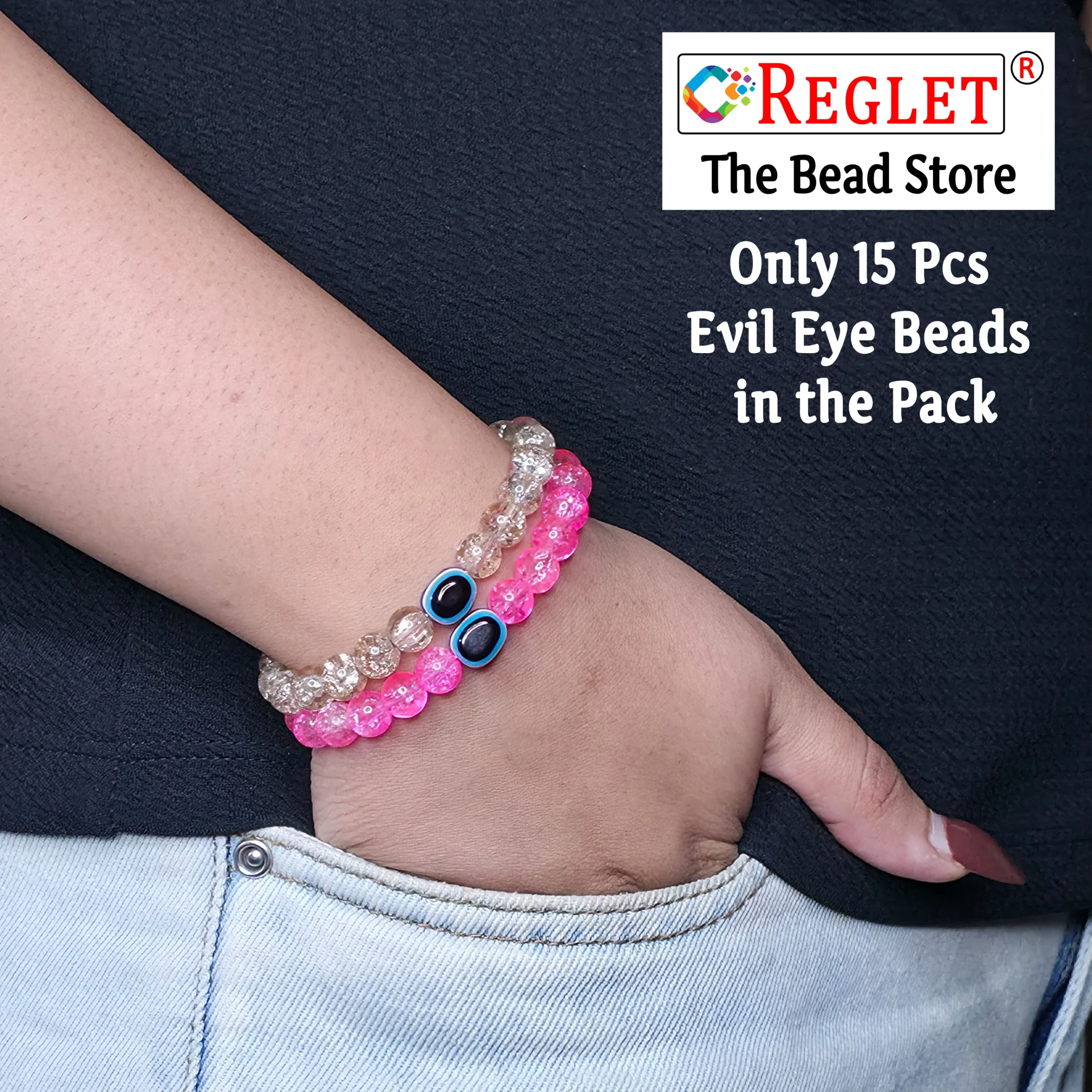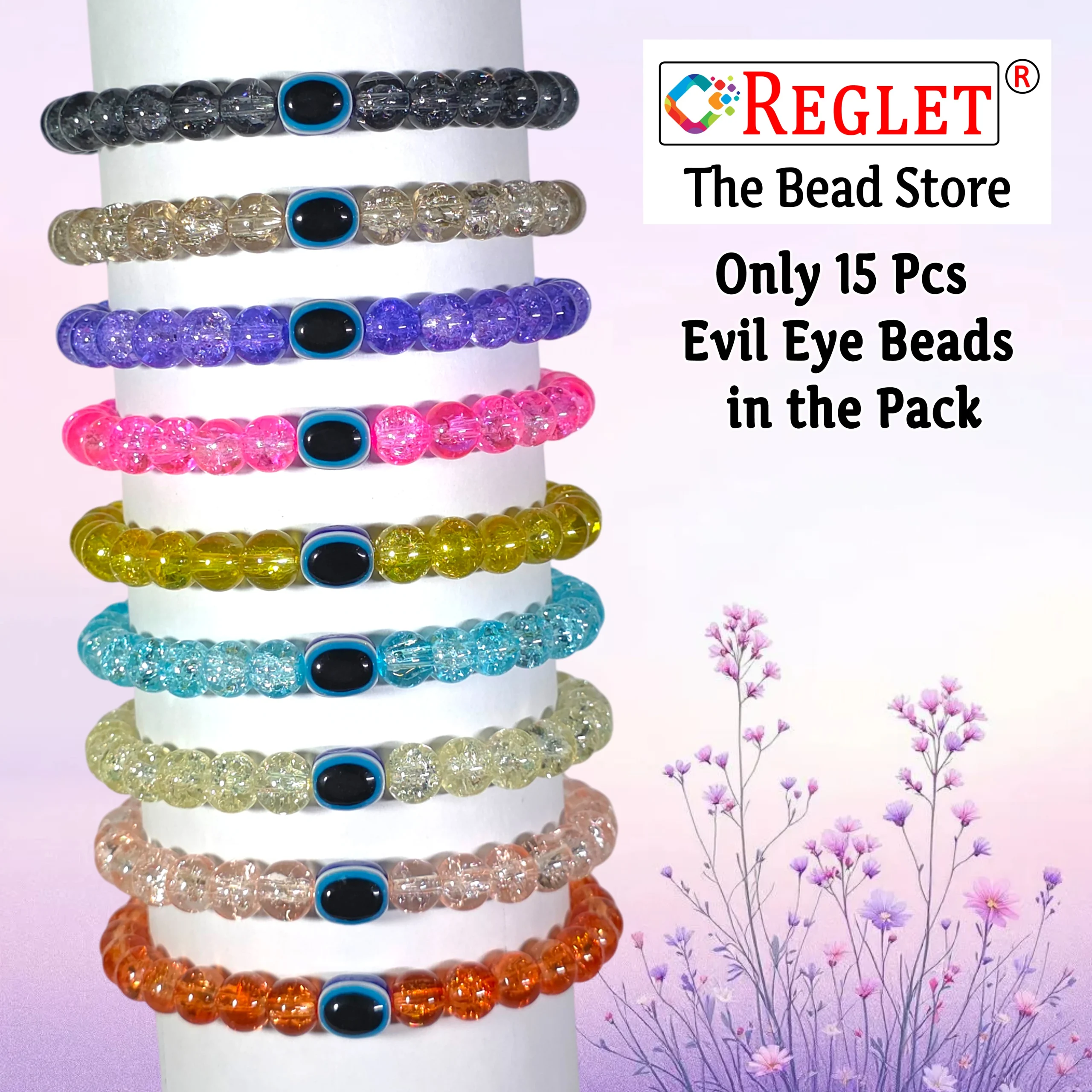 15 Pcs Evil Eye Beads + 250 Pcs Single Shade Sparkle Glass Beads for Bracelet Making Kit