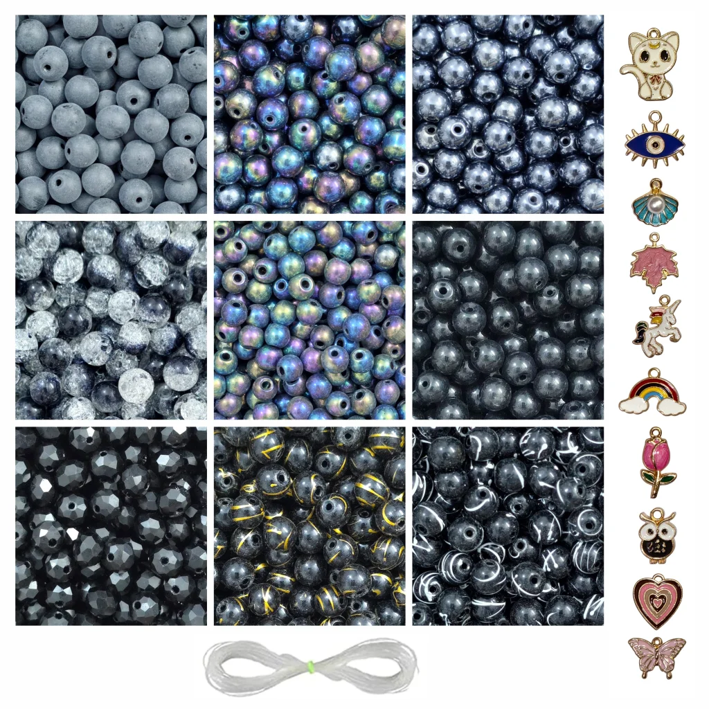 10 Pcs Charms + 225 Pcs Pastel Glass Beads for Bracelet Making Kit
