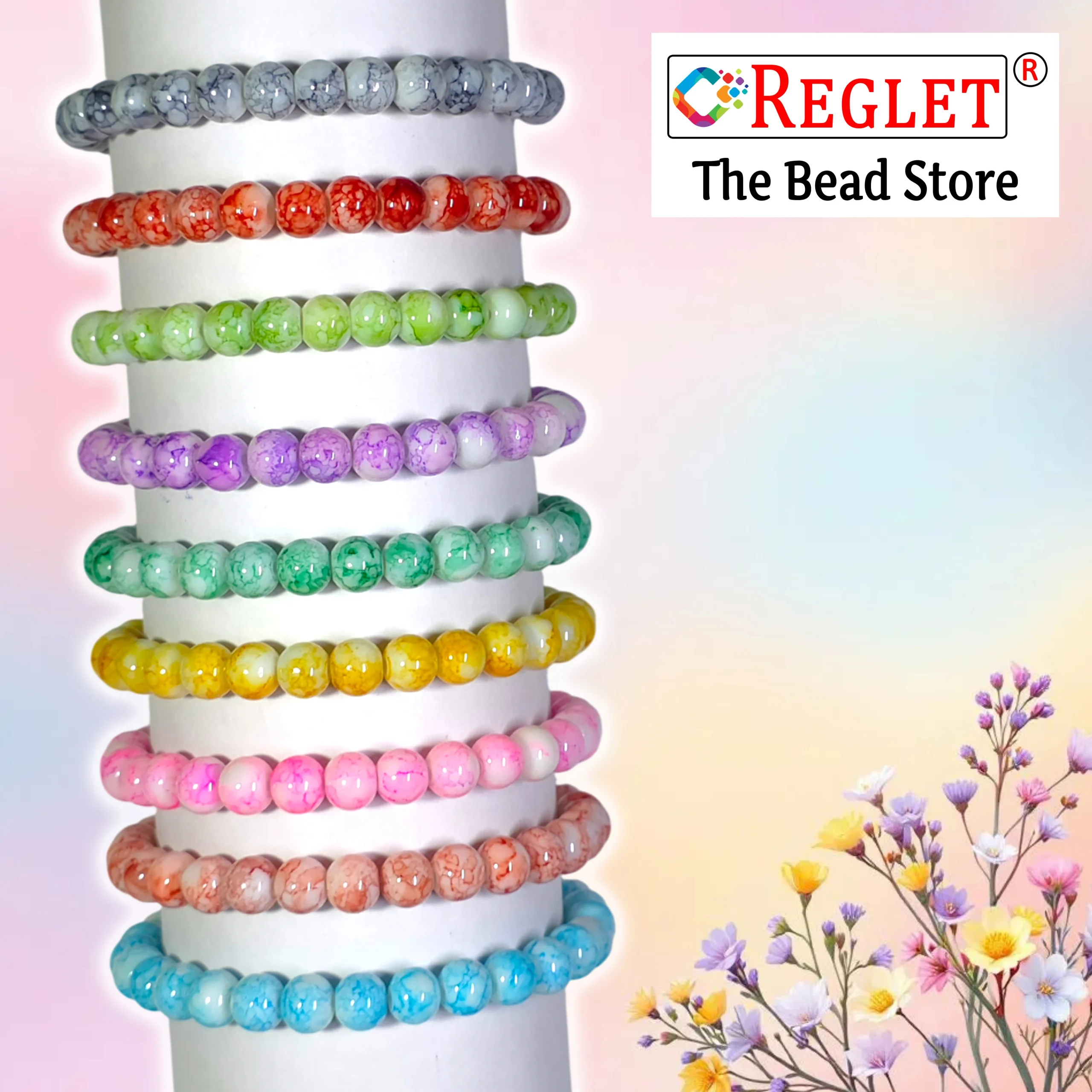 ๐จ 250 Marble Glass Beads โ Premium 8mm beads in 9 vibrant colours, 28 pcs each shade, ideal for bracelet making, jewellery designing, beading & crafts.