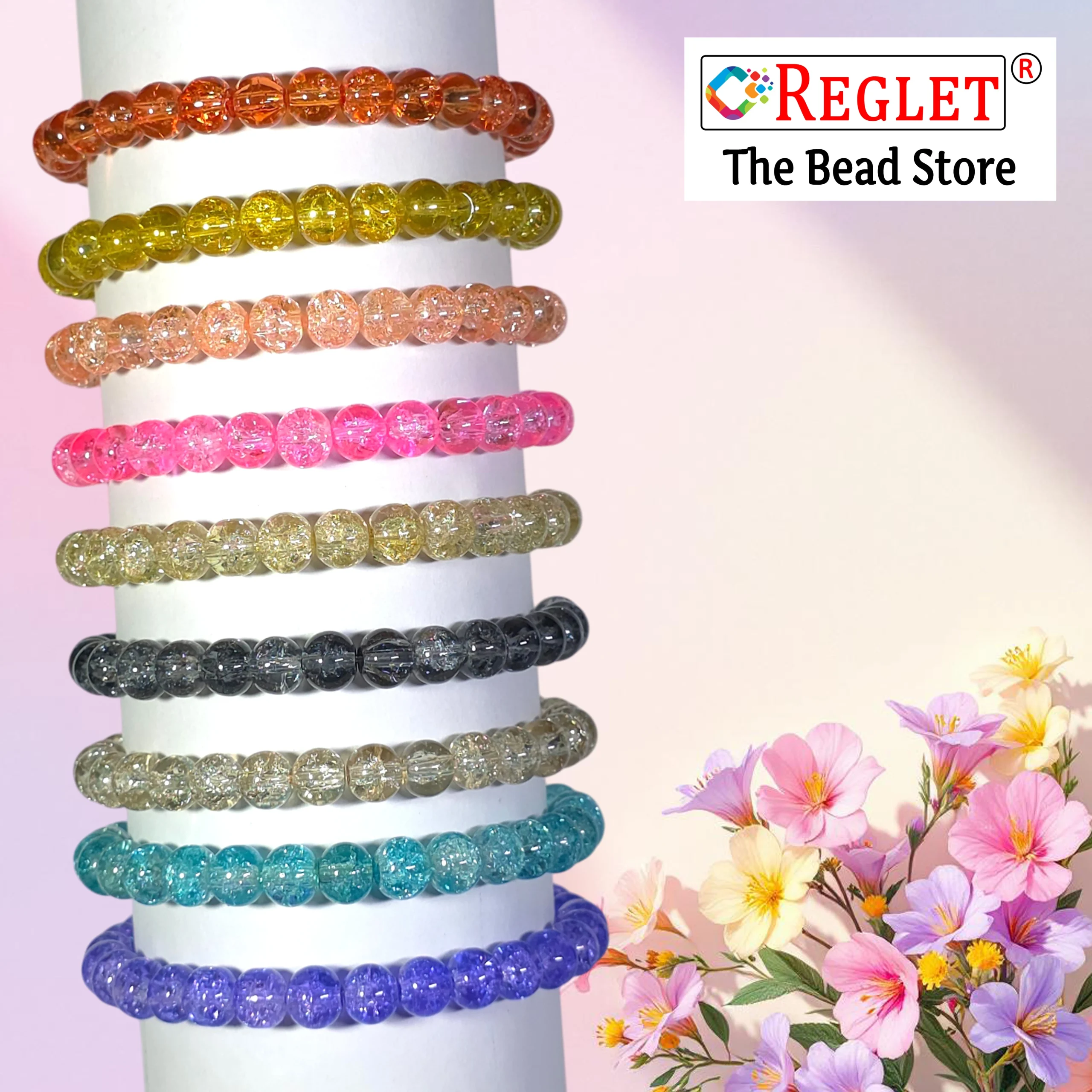 ๐ 250 Sparkle Glass Beads with Elastic Thread โ Includes 250 single shade sparkle glass beads (8mm) and a 5-metre elastic cord, perfect for bracelet making, jewellery design, and craft projects.