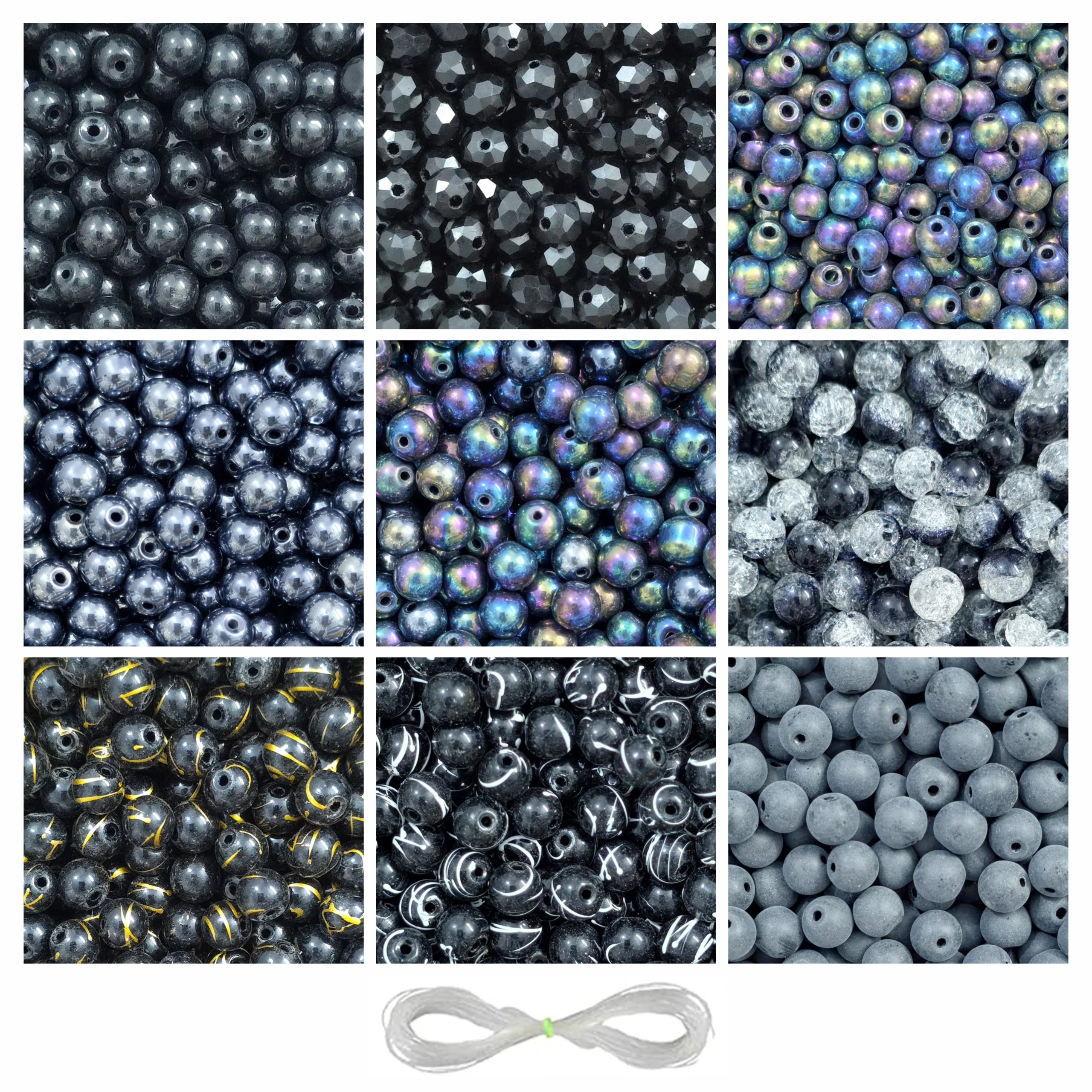 โœจ Complete Jewellery Kit โ€“ This set includes 290 pcs premium-quality 8mm black glass beads, carefully designed for bracelets, necklaces, earrings, and DIY jewellery projects.