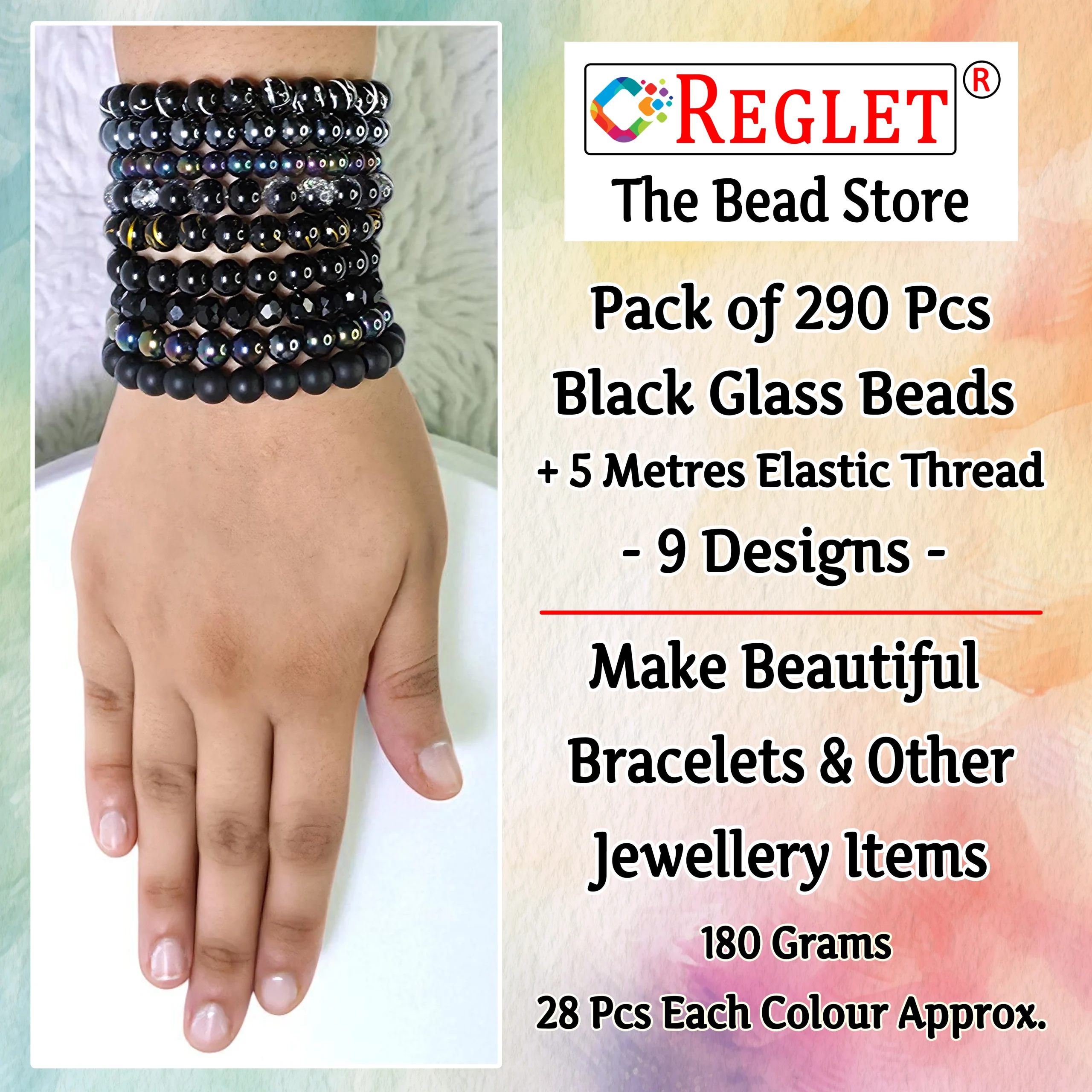 This REGLET 290 Pcs Black Glass Beads Bracelet Making Kit is a must-have for jewellery enthusiasts and crafters. โœจ The kit includes 290 premium 8mm beads in 9 unique types (20g each, total 180g), offering endless creative possibilities. ๐ŸŽจ Their glossy finish and crystal-like shine make them ideal for bracelets, necklaces, earrings, and custom jewellery designs. ๐Ÿ’Ž Strong, smooth, and durable, these beads add elegance and sophistication to any handmade accessory. ๐Ÿงต Whether youโ€™re a beginner exploring DIY crafts or an expert in beadwork and embroidery, this kit is perfect for creating stylish and professional-quality designs. ๐ŸŒŸ