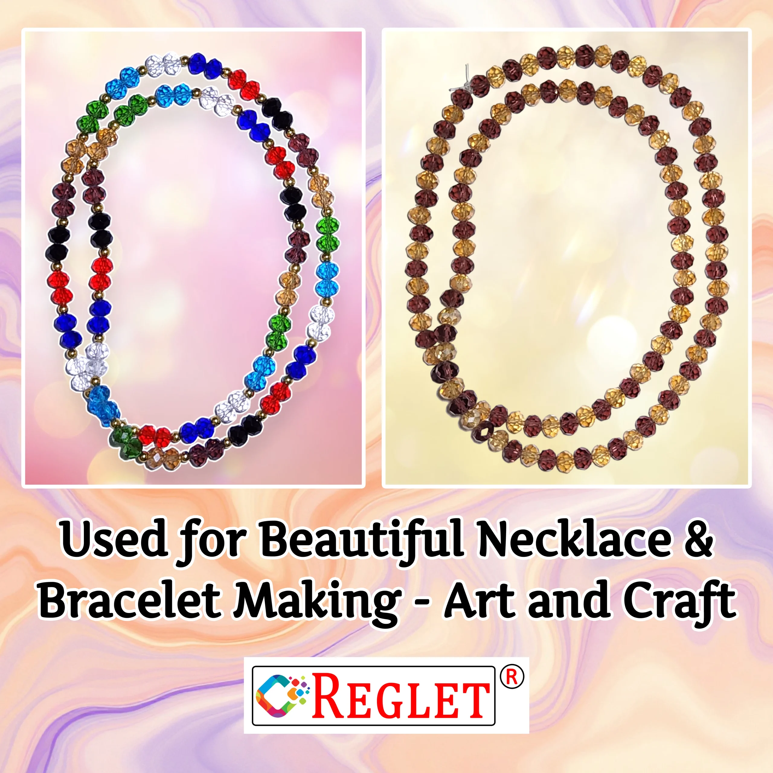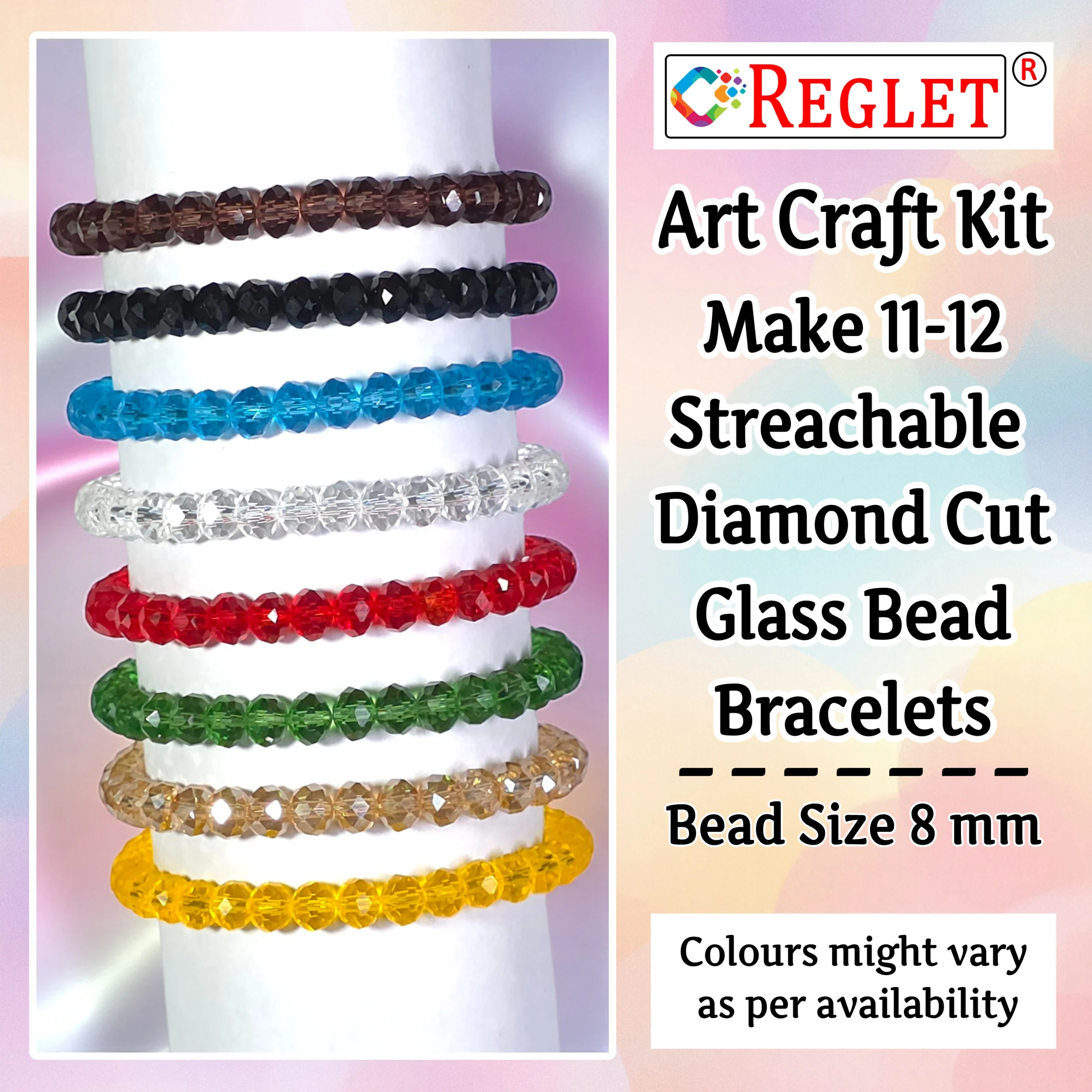The REGLET 320 Pcs Diamond Cut Glass Beads Kit is a stunning collection designed for jewellery lovers and craft enthusiasts. It includes 320 premium 8mm crystal-clear beads in 8 vibrant colours (40 pieces per shade) that shimmer beautifully in light. Crafted with precision, each bead has a refined diamond-cut finish for extra sparkle. The kit also includes 5 metres of stretchable elastic thread, making it easy to design elegant bracelets, necklaces, and decorative pieces. Perfect for beading, embroidery, and crafting, this set offers endless creativity. Beautifully packaged, it also makes a great gift for women and girls who love making stylish handmade jewellery.