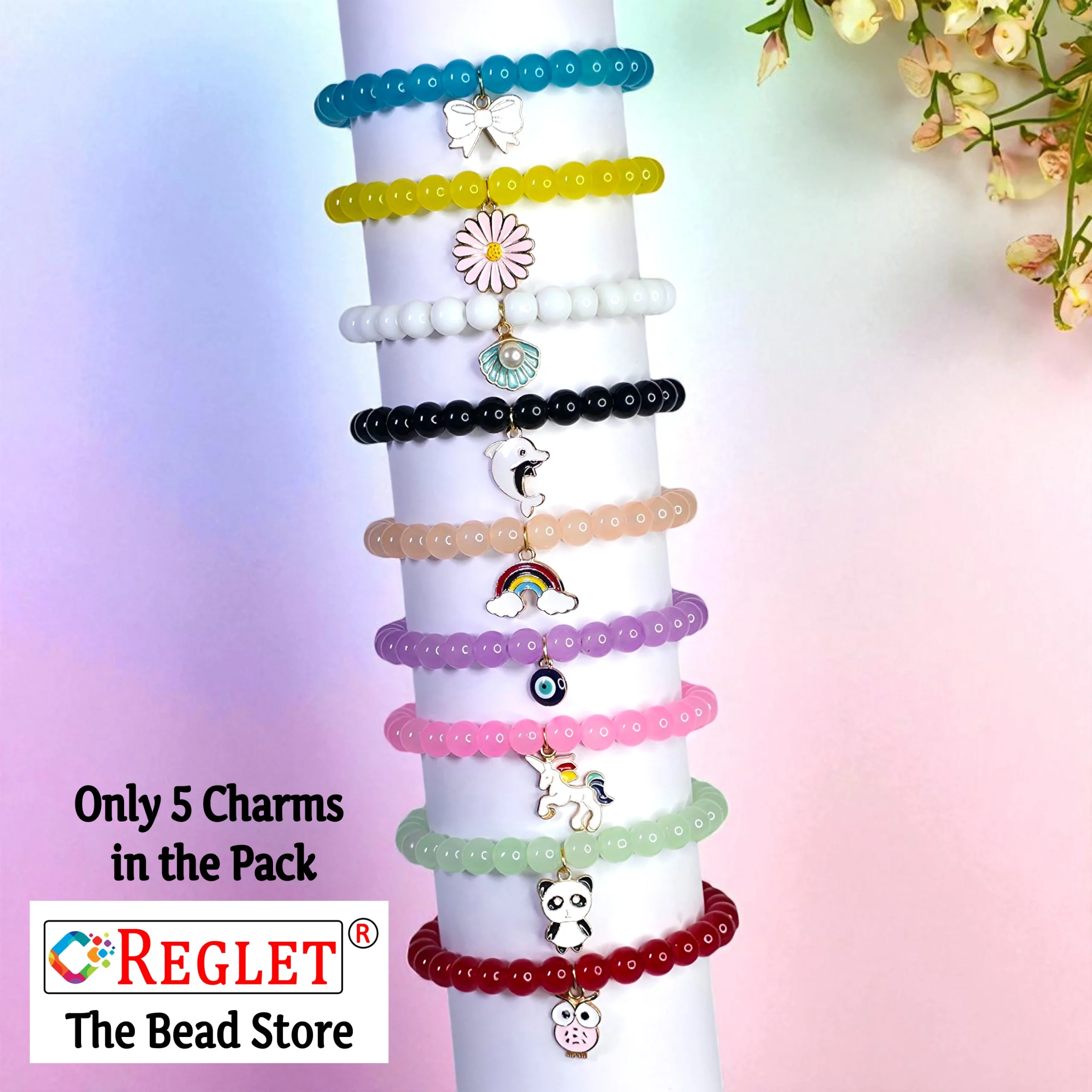 5 Pcs Charms + 250 Pcs Jelly Glass Beads for Bracelet Making Kit