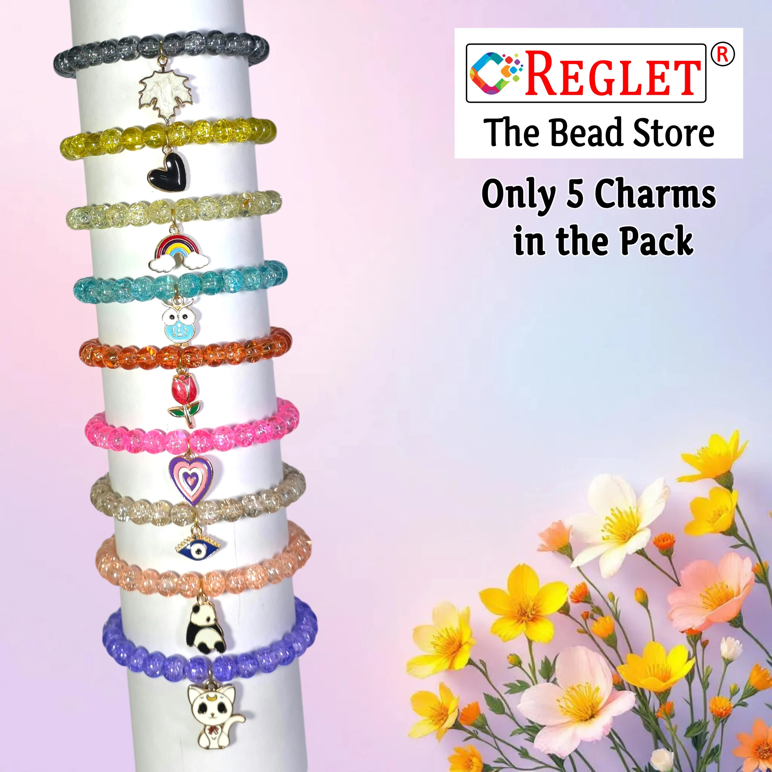 5 Pcs Charms + 250 Pcs Single Shade Sparkle Glass Beads for Bracelet Making Kit