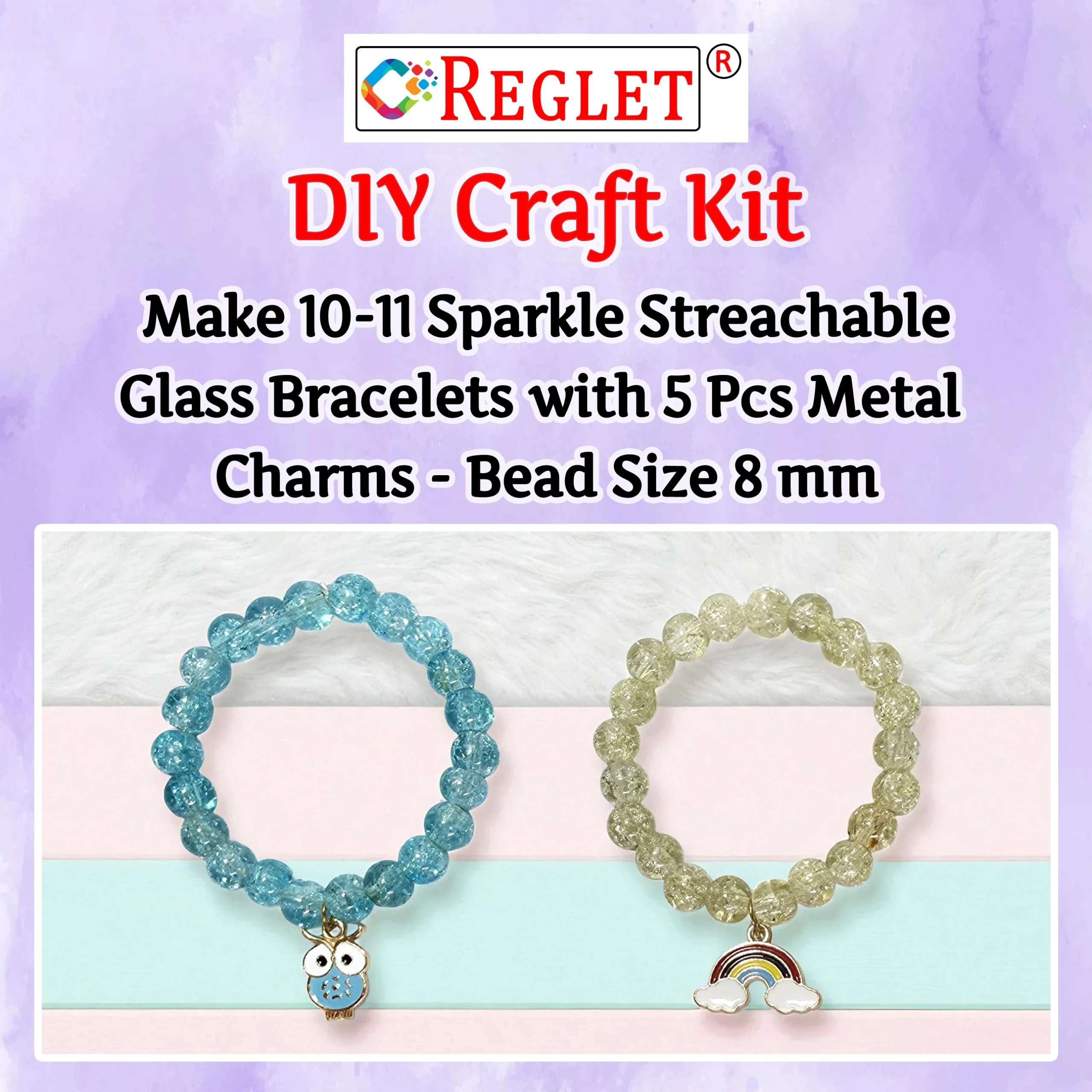 The REGLET Bracelet Making Kit for Women features 250 high-quality 8mm single shade sparkle glass beads in 9 vibrant colours (20g each, 180g total), along with 5 decorative charms and a 5-metre elastic thread. Designed with a smooth, glossy finish, these beads are perfect for creating bracelets, necklaces, earrings, anklets, and keychains. Each shade is packed separately, making it easy to design jewellery in single-colour themes or mix them for variety. Ideal for beginners and experienced makers, this kit also makes a thoughtful gift for women, teens, and craft lovers who enjoy DIY jewellery.