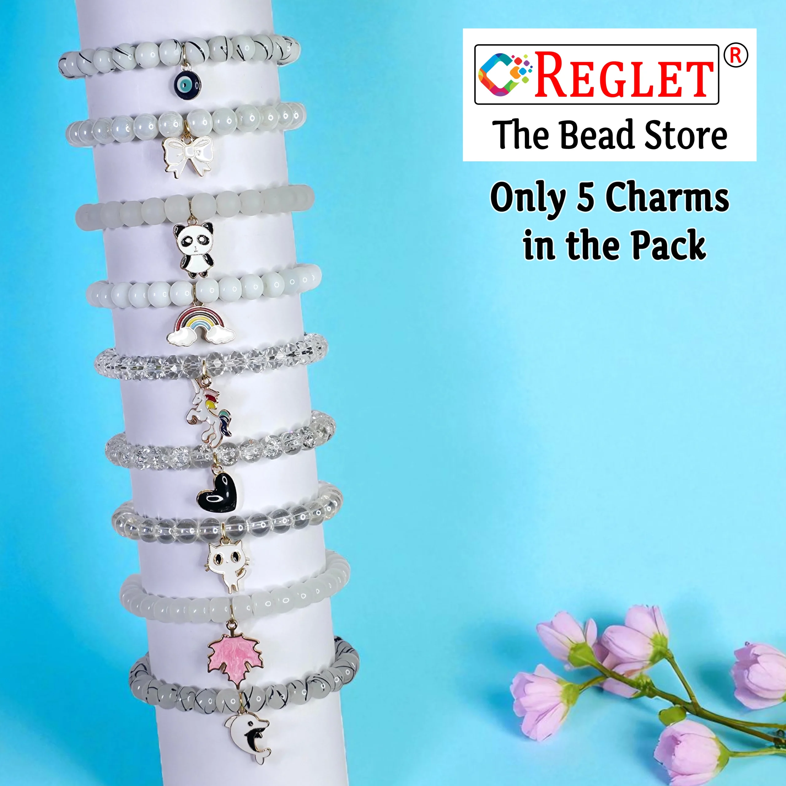 5 Pcs Charms + 250 Pcs White Glass Beads for Bracelet Making Kit