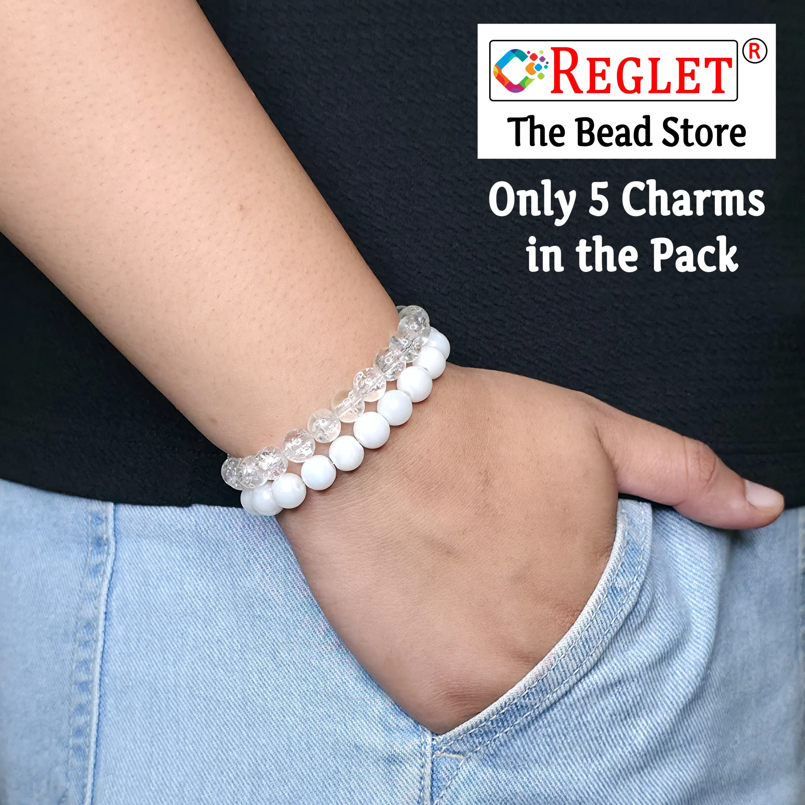 โจ Complete Jewellery Set โ Includes 5 stylish metal charms and 250 pcs premium-quality 8mm white glass beads, perfect for bracelets, necklaces & earrings.