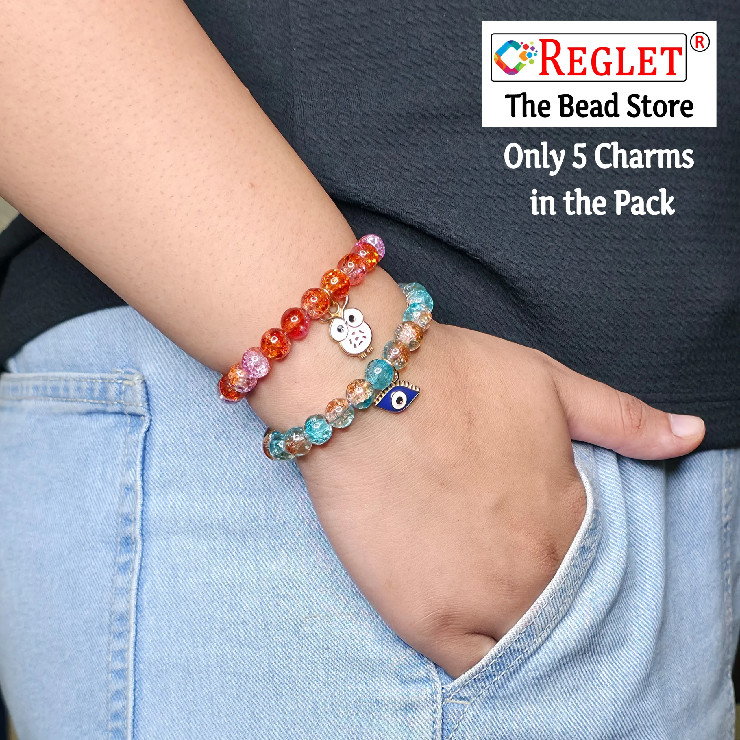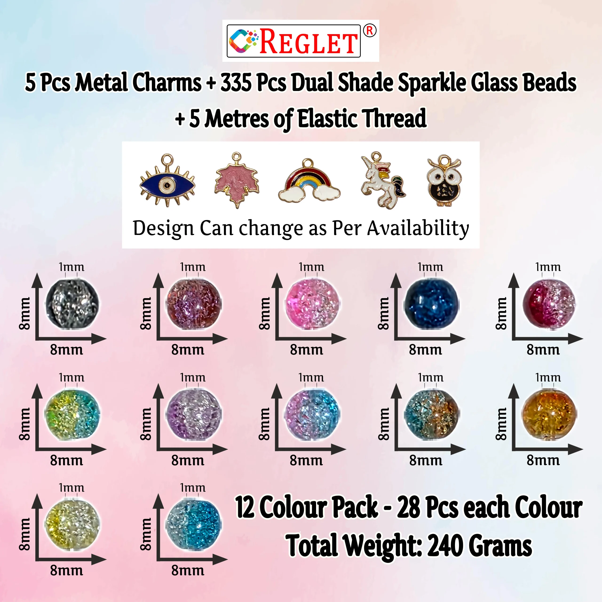 5 Pcs Charms + 335 Pcs Dual Shade Sparkle Glass Beads for Bracelet Making Kit