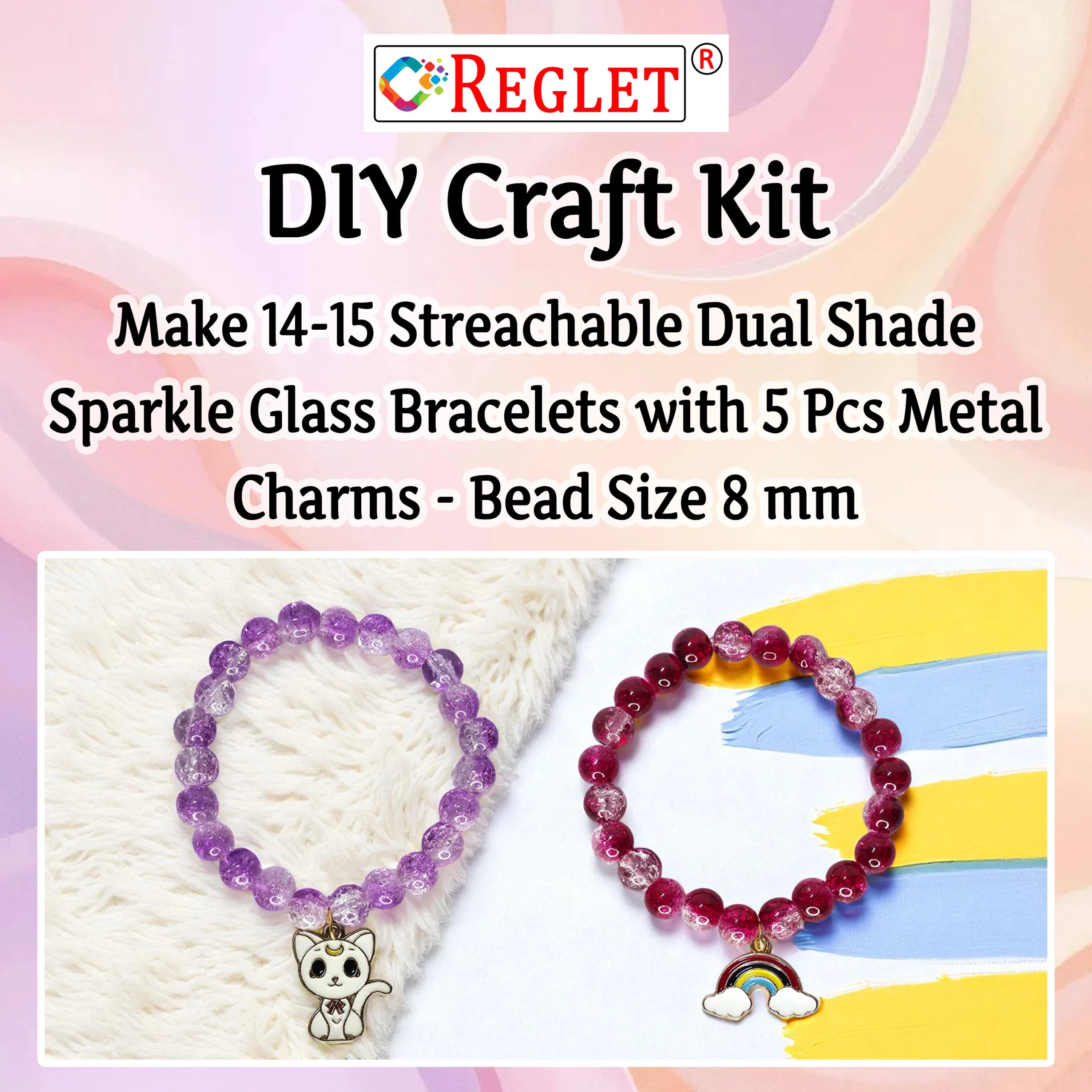 ๐ Complete Jewellery Making Kit โ Includes 335 dual shade sparkle glass beads (8mm), 5 stylish charms, and a 5-metre elastic cord, ideal for bracelet making and DIY crafts.
