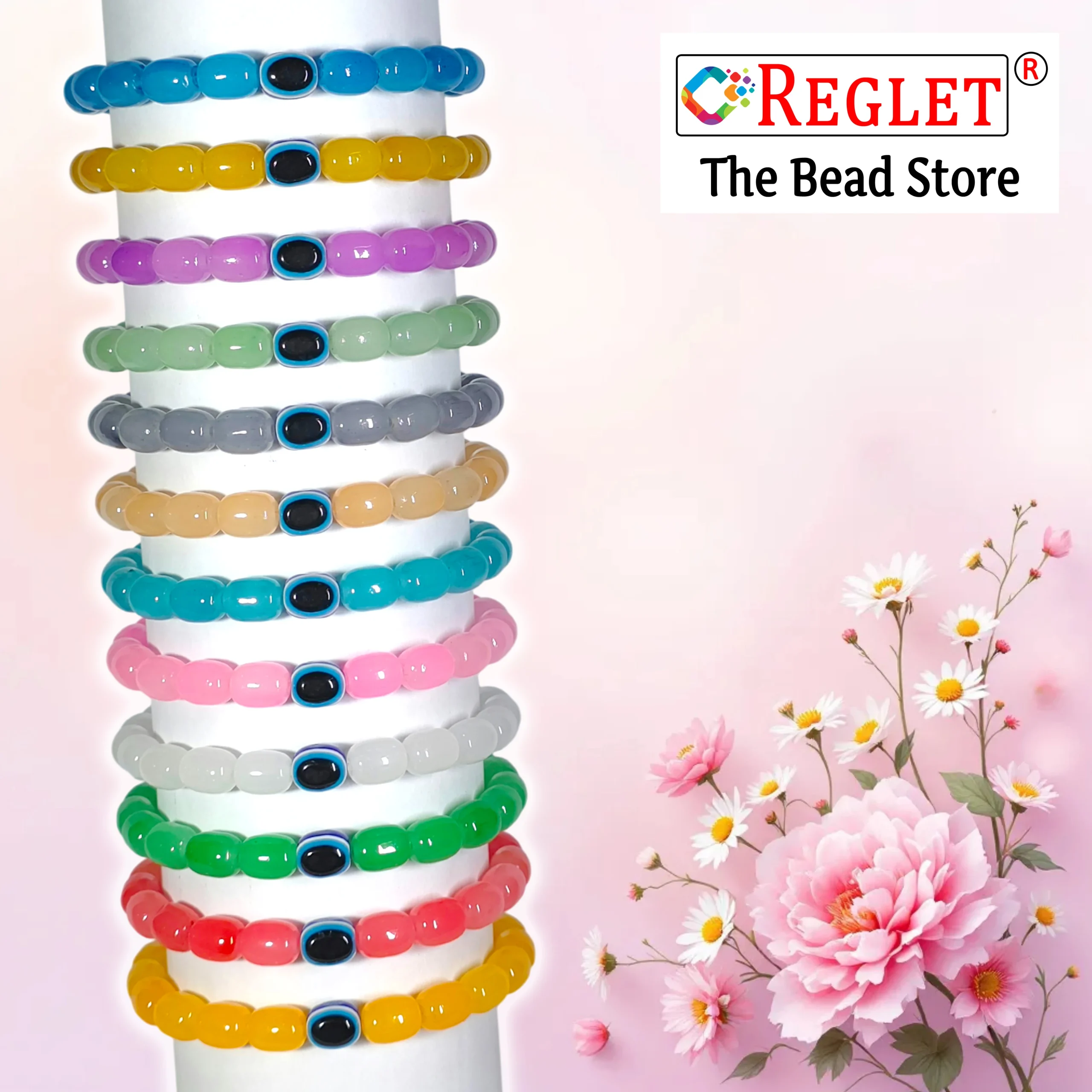 Add charm and protection to your accessory collection with the REGLET Pack of 12 Cylinder Shaped Glass Bead Bracelets with Evil Eye Bead. Featuring vibrant multicolour 8x11mm cylinder beads and a symbolic evil eye bead, these stretchable and adjustable bracelets fit comfortably on wrists of all sizes. Wear them individually for a subtle, stylish touch or stack them together for a trendy layered look. Perfect for casual outings, parties, or gifting, these bracelets suit every occasion. The set includes 5 metres of elastic thread, allowing you to create personalized bracelets or explore your own bead craft projects. Stylish, versatile, and meaningful, this bracelet set combines fashion, creativity, and protection in one complete package.