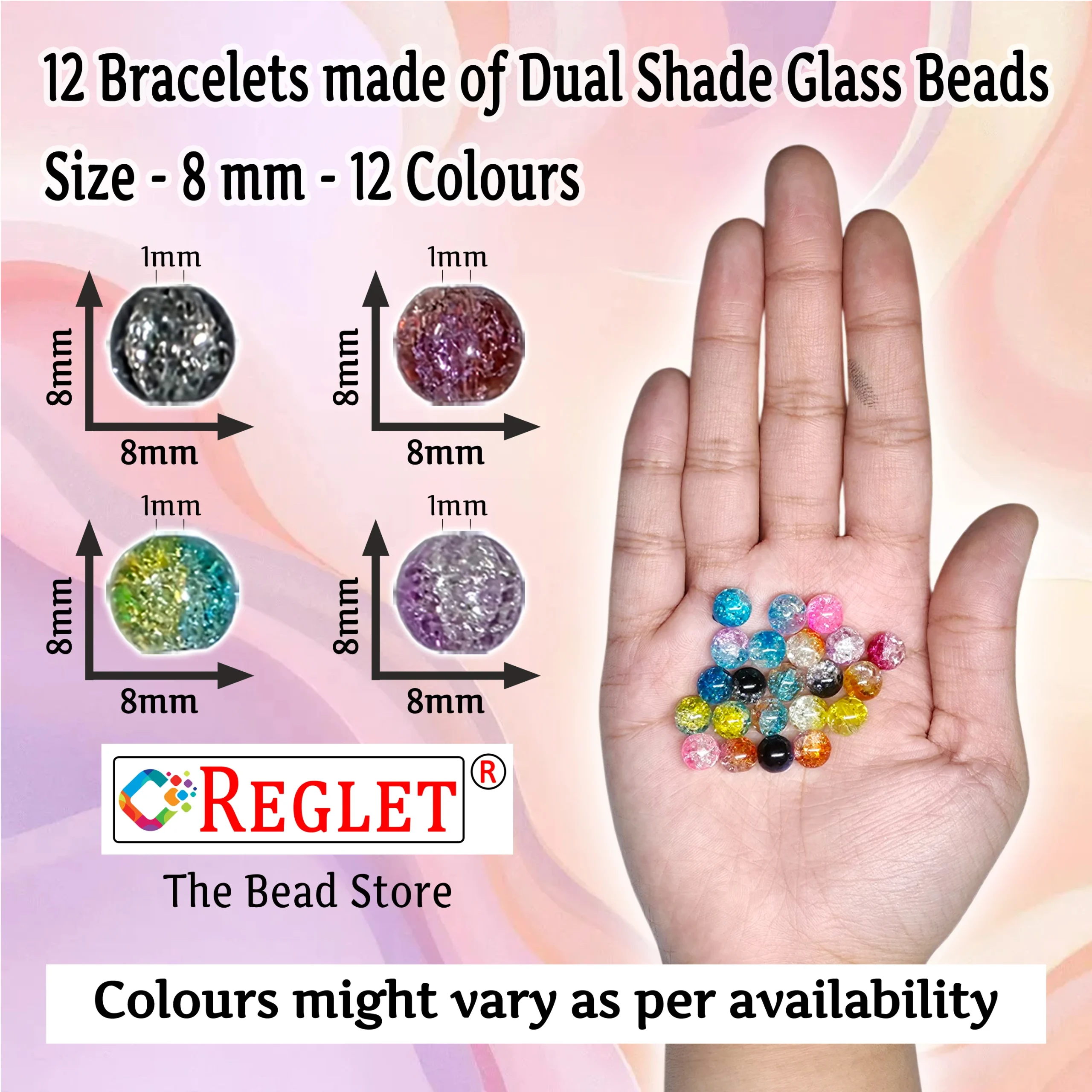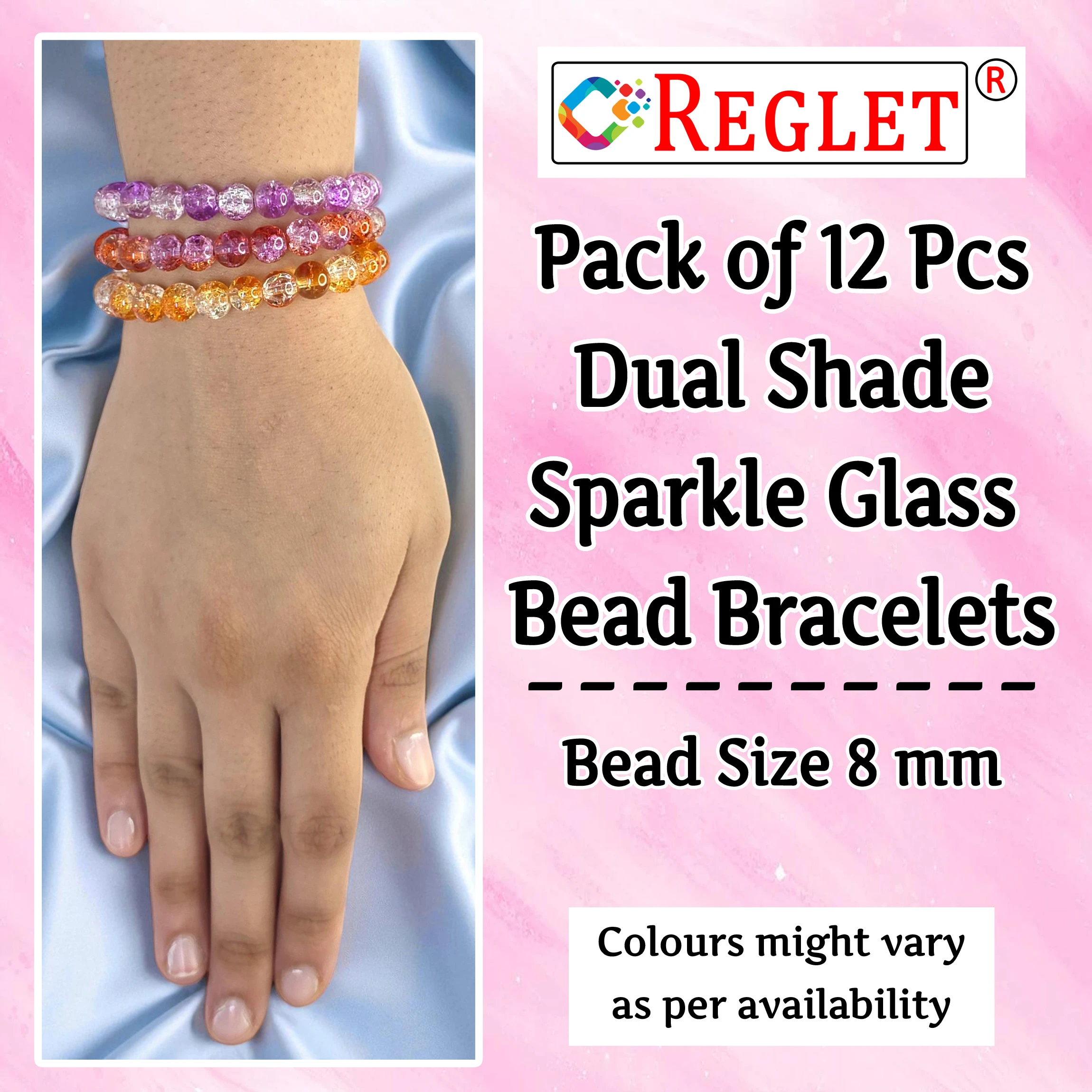 [ PACKAGE INCLUDES ] – This set contains 12 Adjustable Dual Shaped Sparkle Glass Bead Bracelets . The Size of Glas beads is 8mm. Adjustable size: Pack contains 5 metres elastic cord, allowing you to easily adjust the bracelet to fit your wrist comfortably. Elegant Dual Tone Style: These dual shade sparkle glass bracelets feature shimmering glass beads that add a stunning pop of color and style to any outfit, perfect for daily wear and festive occasions. Ideal for DIY Jewellery and Beadwork: These bracelets are crafted with high-quality dual shade glass beads, making them a great addition to your beads for jewellery making kit or bead craft projects. Versatile and Fashion-Forward: Wear these bracelets alone or stacked for a unique layered look—ideal for fashion accessories, personal style, and as thoughtful gifts for girls and women.