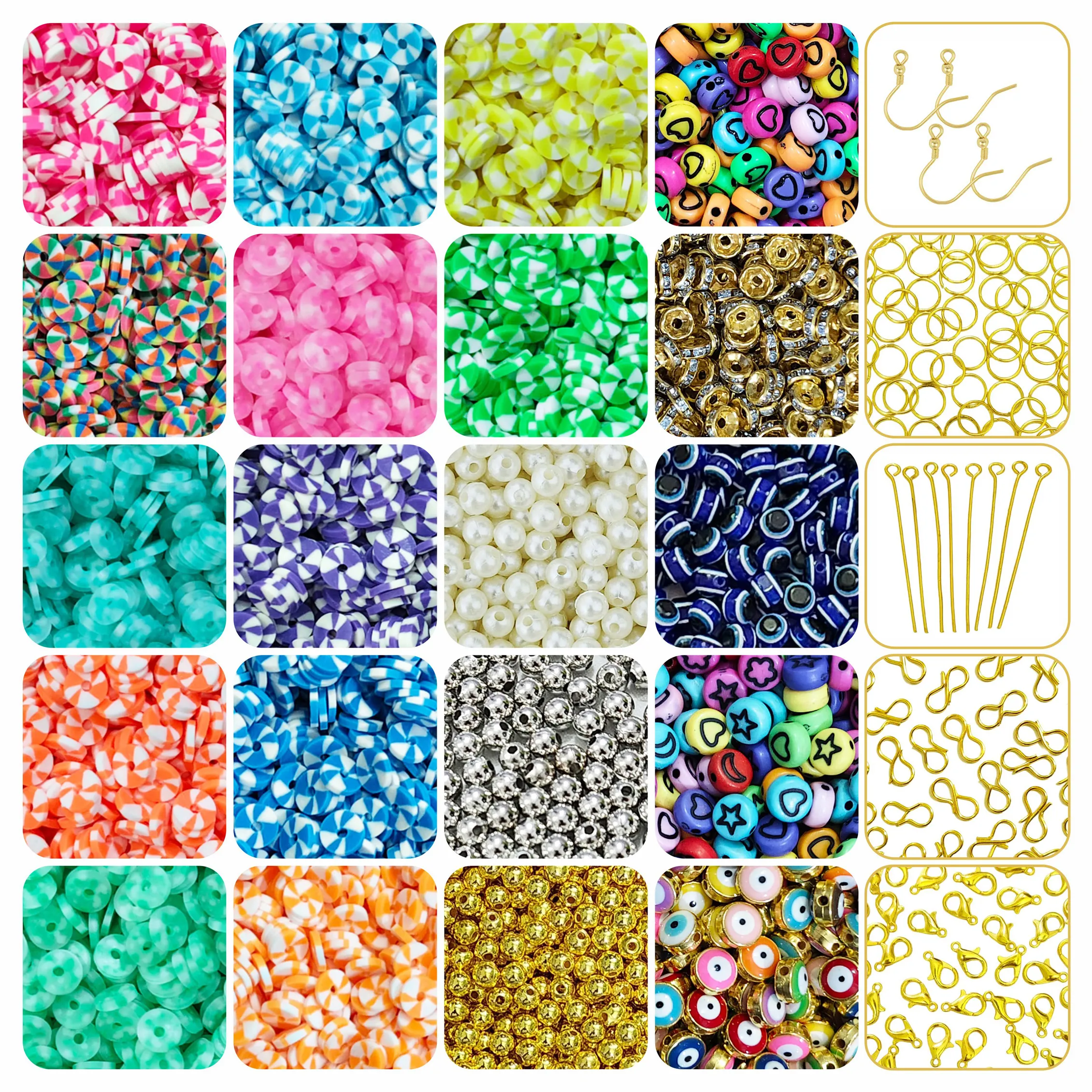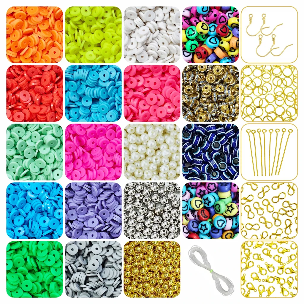 3000 Pcs Dual Tone Flat Polymer Clay Fimo Beads [6mm] + Jewellery Making Kit – Pack of 26
