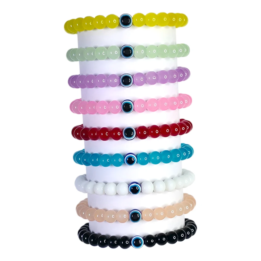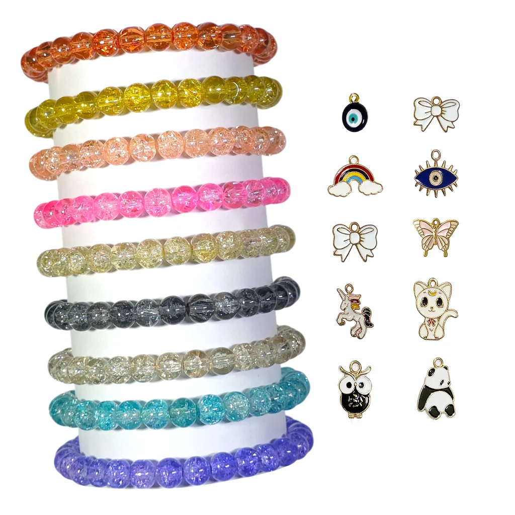 [ PACKAGE INCLUDES ] – This set contains 8 Adjustable Glass Bead Bracelets made of Jelly + Diamond Cut Beads. The Size of Glass beads is 8mm.