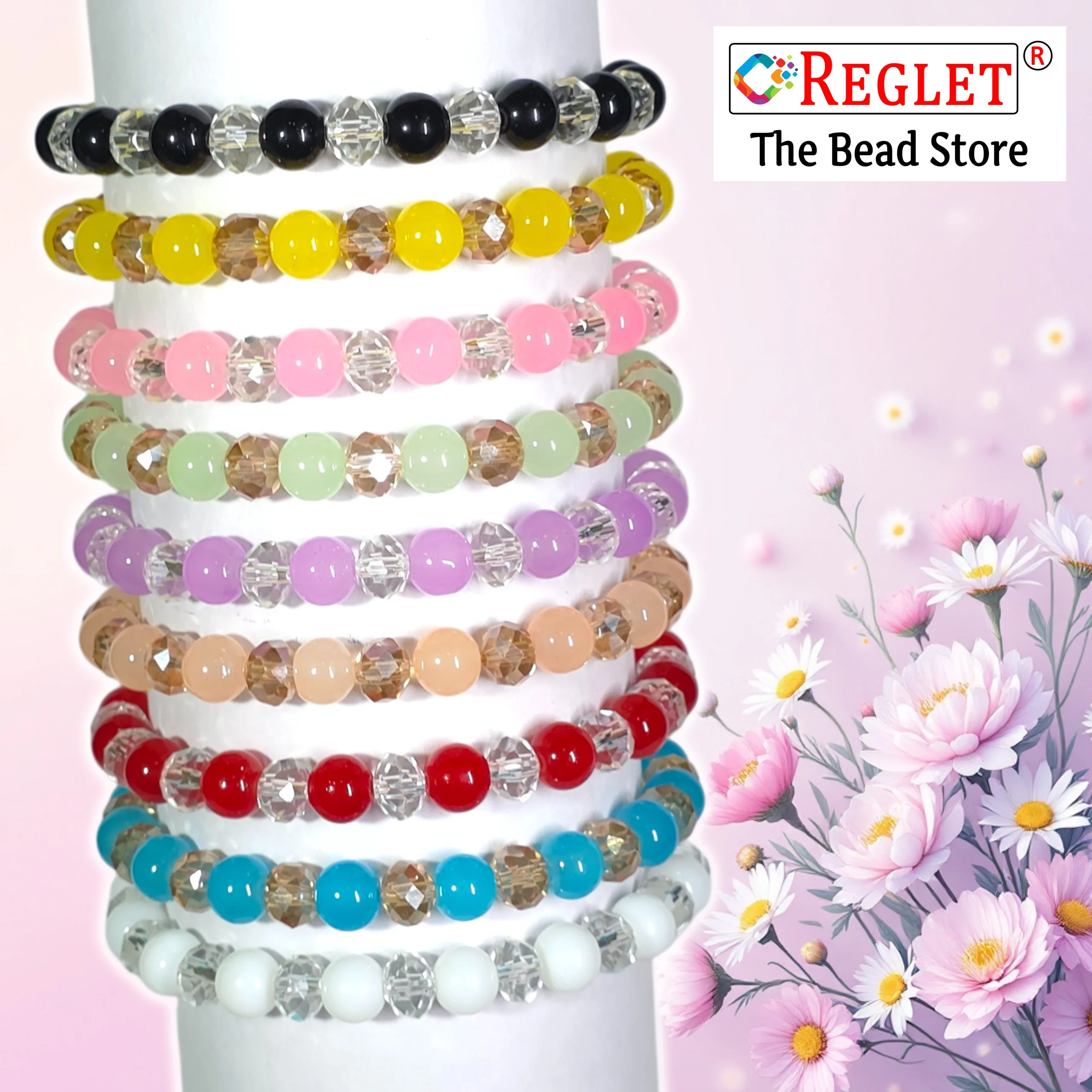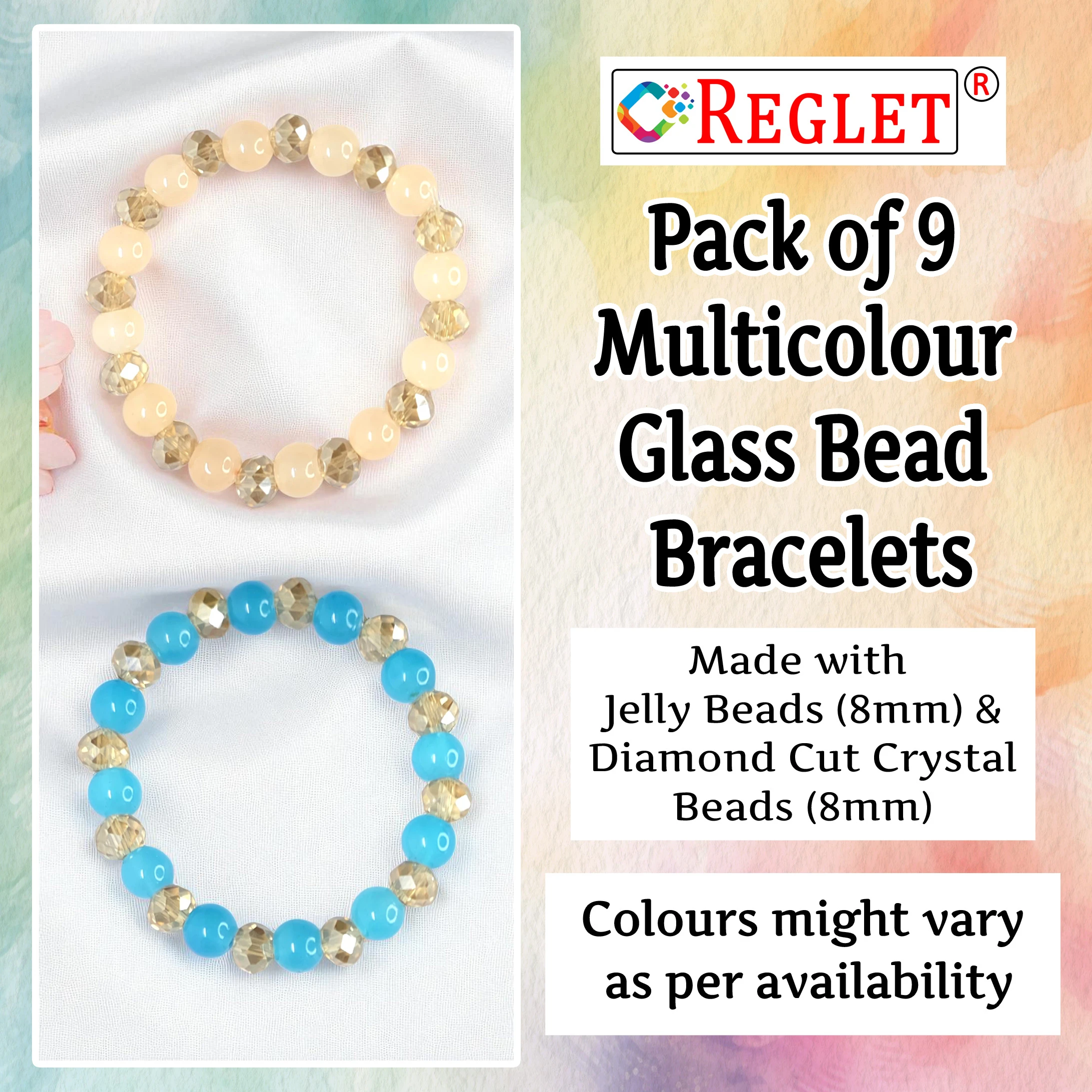 [ PACKAGE INCLUDES ] – This set contains 8 Adjustable Glass Bead Bracelets made of Jelly + Diamond Cut Beads. The Size of Glass beads is 8mm. Adjustable size: Pack contains 5 metres elastic cord, allowing you to easily adjust the bracelet to fit your wrist comfortably. Stylish Glass Bracelets with Jelly & Diamond Cut Beads: Designed with premium Jelly and diamond-cut glass beads, these bracelets offer a sparkling, elegant look for women and girls. Perfect for Everyday & Special Occasions: Lightweight and comfortable to wear, these glass bracelets complement both traditional and modern outfits—ideal for parties, festivals, or casual wear. Fashionable Gift Choice: A trendy and timeless jewellery piece, these glass bracelets make a thoughtful gift for birthdays, return favors, or festive celebrations.