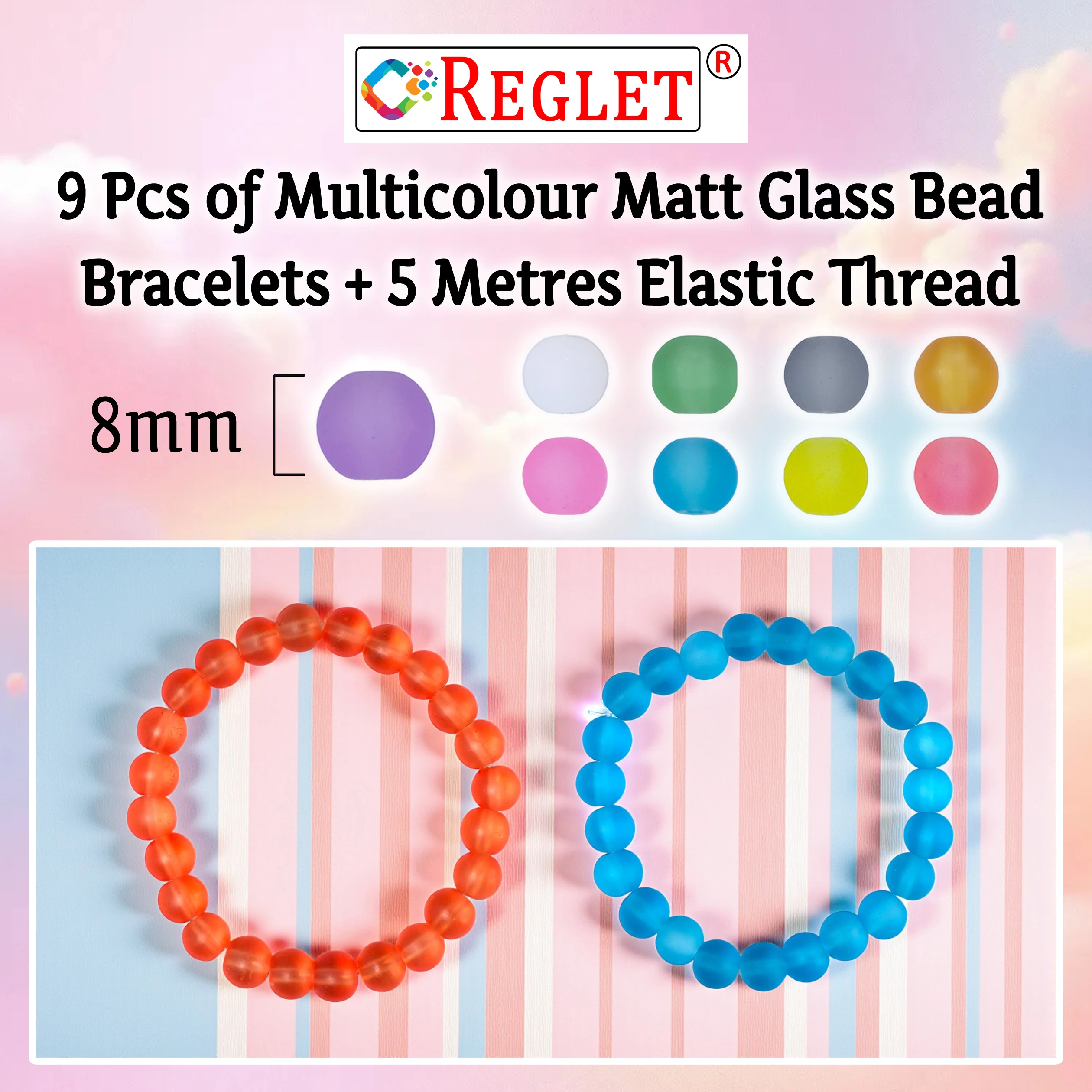 Add a pop of color and style to your accessory collection with the REGLET Pack of 9 Matt Glass Bead Bracelets. Designed with vibrant multicolour 8mm beads, these stretchable and adjustable bracelets provide a comfortable fit for women and girls of all ages. Wear them individually for a subtle touch of elegance or stack them together for a trendy layered look. Perfect for casual outings, parties, or gifting, these bracelets suit every occasion. The set also includes 5 metres of elastic thread, giving you the freedom to create personalized bracelets or explore your own bead craft projects. Stylish, versatile, and fun, this bracelet set combines fashion, creativity, and practicality in one complete package.