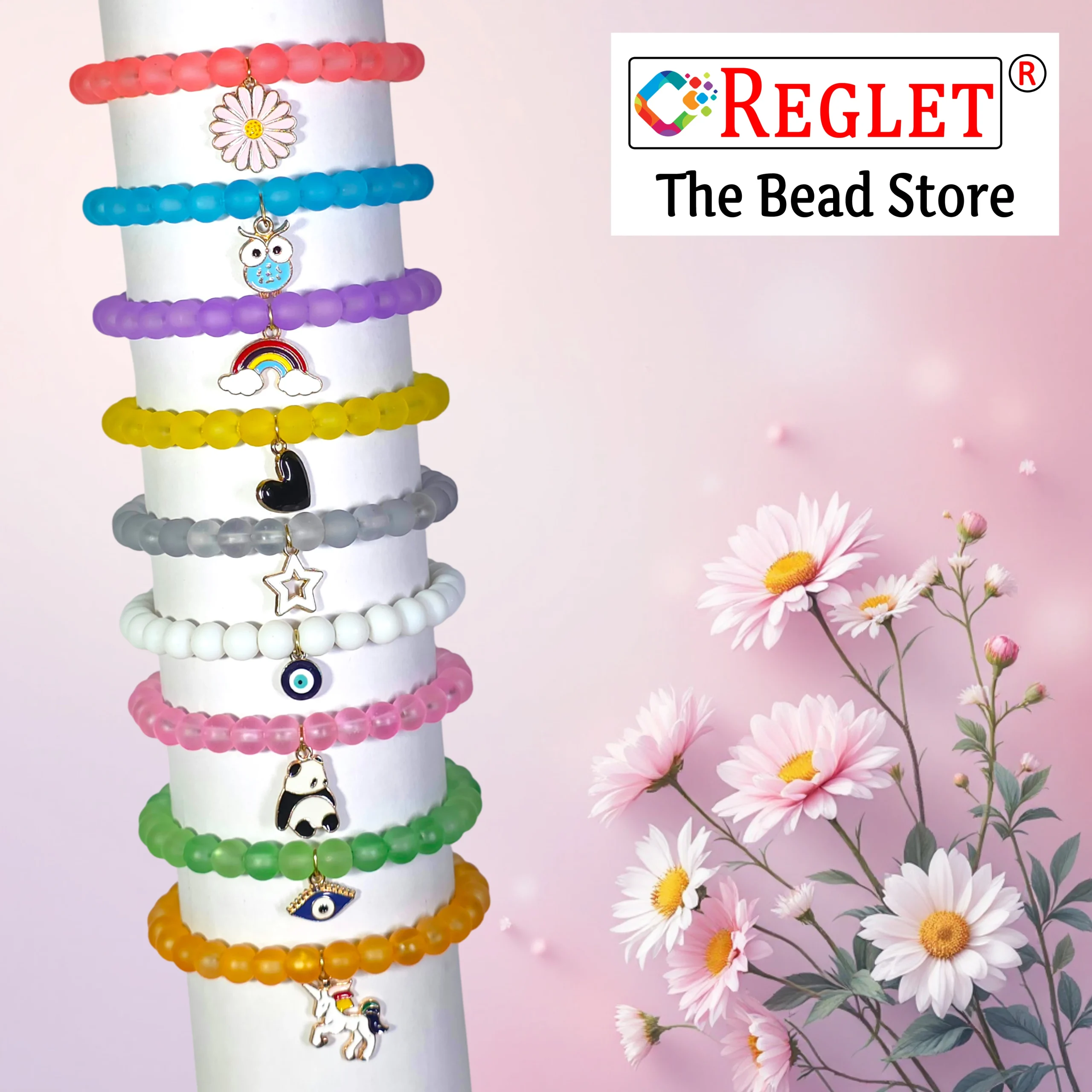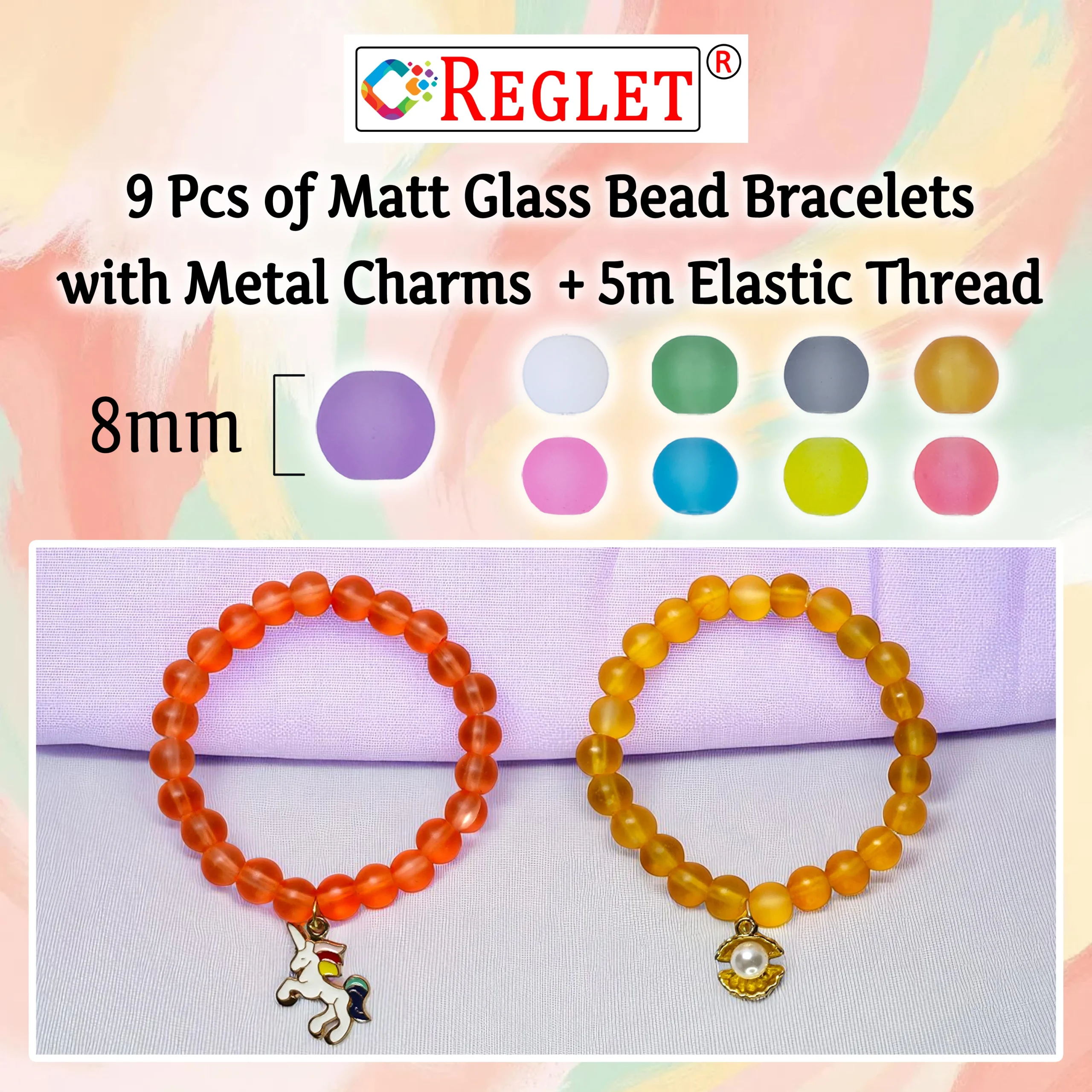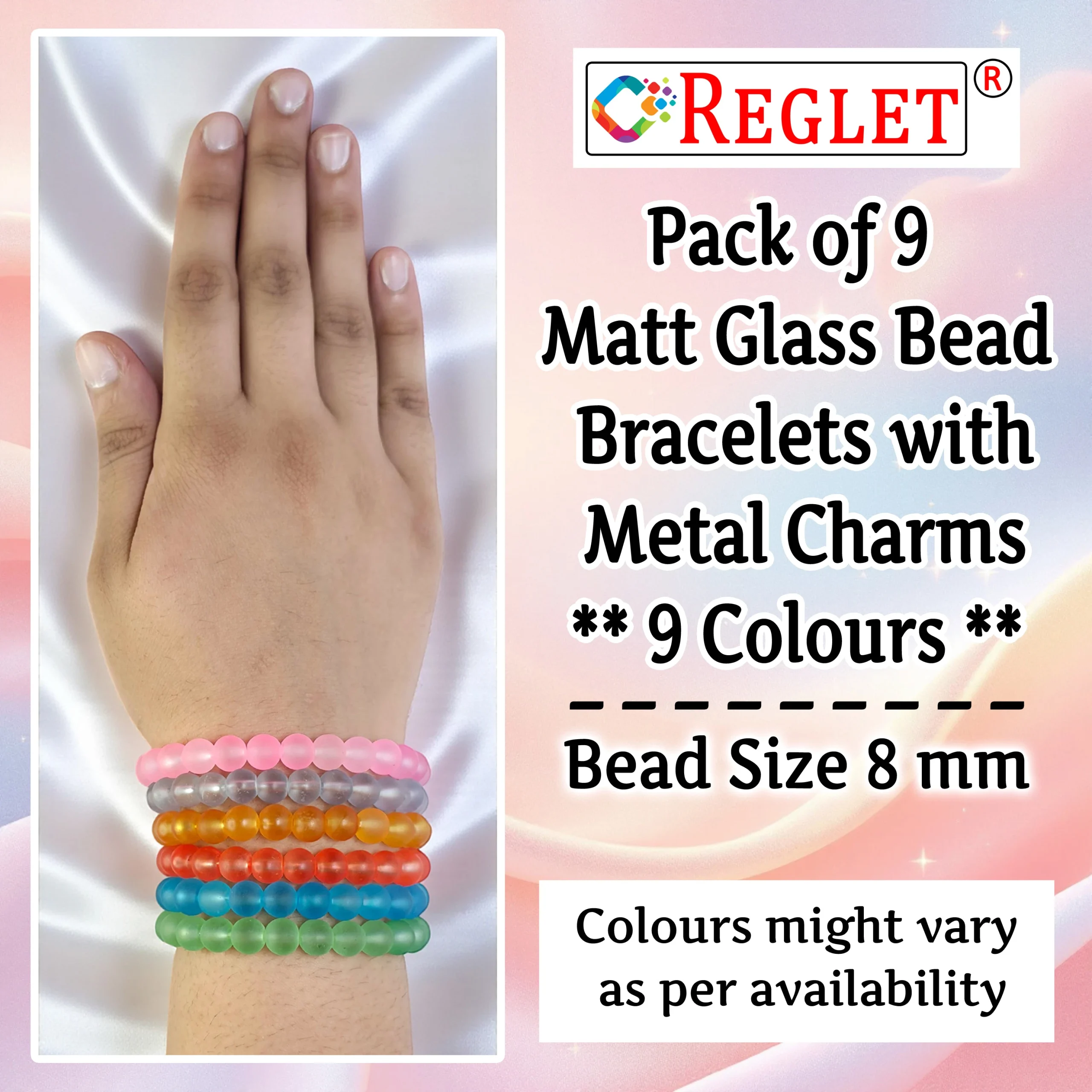 Matt Glass Beads Bracelet Set with Charms – Pack of 9 – Stretchable
