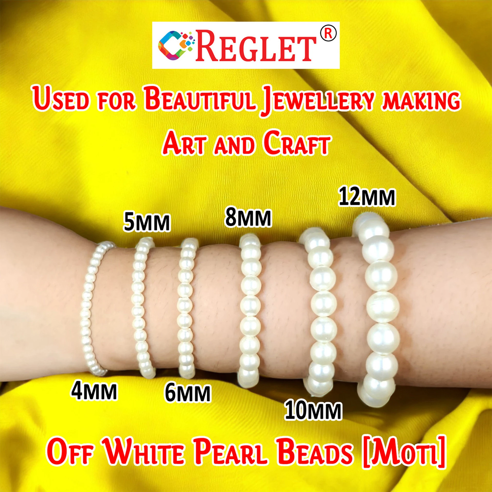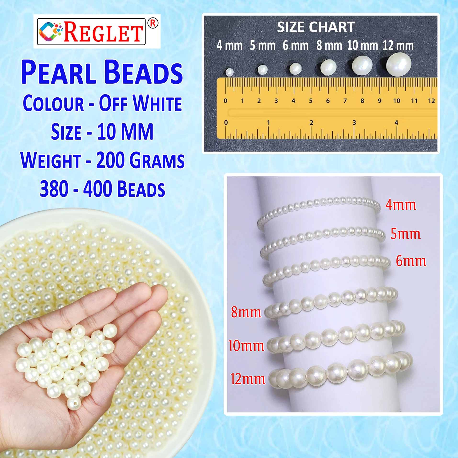 REGLET 10mm Off-White Artificial Pearl Beads are perfect for Beads for Jewellery Making Kit, Beading, Beadwork, Crafting, Embroidery, and Bead Craft. These high-quality Pearls for Craft feature a smooth texture and elegant off-white shine, ideal for creating statement necklaces, bracelets, earrings, and home décor. Their premium finish adds a luxurious touch to any design, making them suitable for wedding jewellery, festive crafts, or DIY projects. Perfect for both beginners and experts, these pearls enhance every creation with timeless charm.