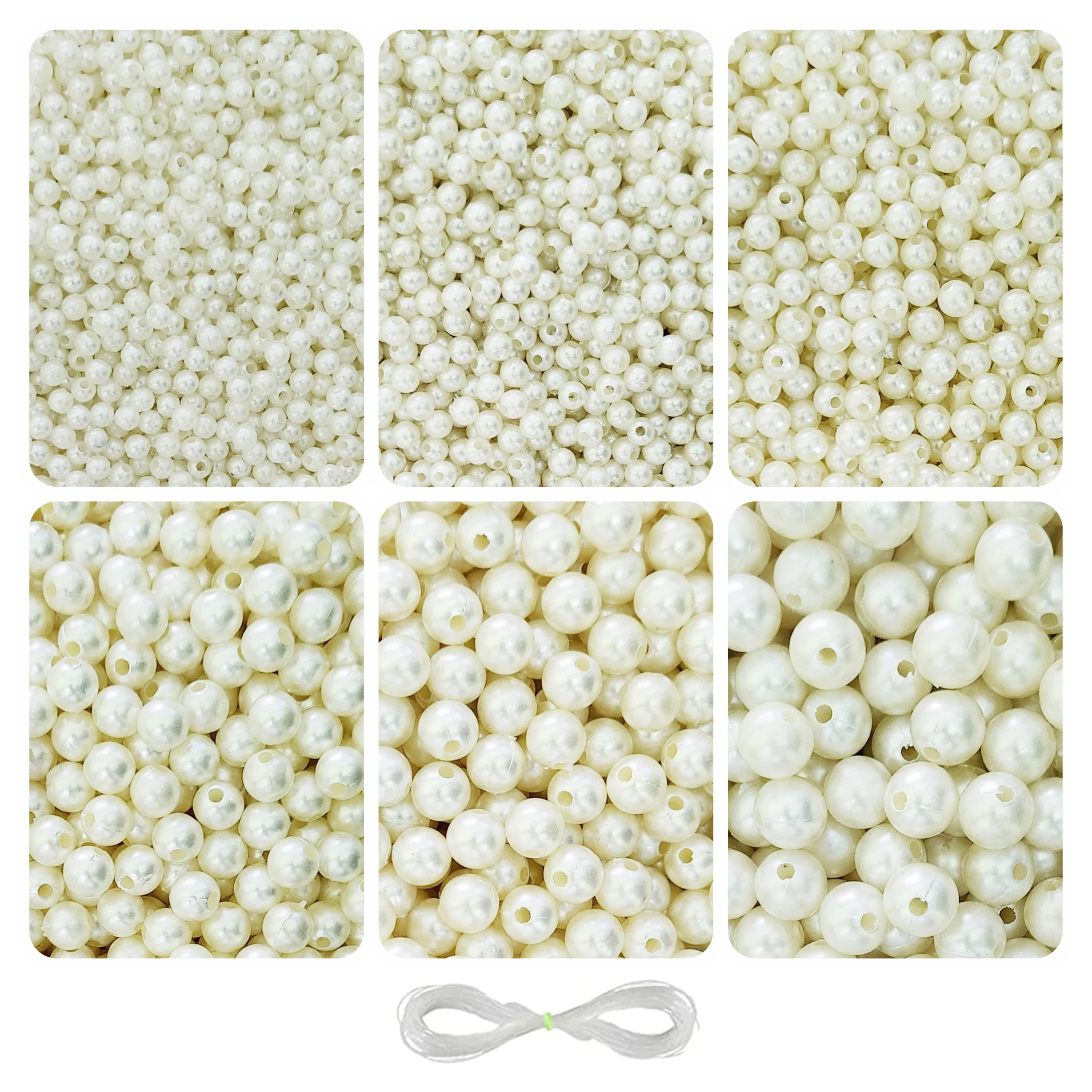 1800 Pcs Off White Pearl Beads for Craft, Jewellery Making Kit – Size 4 , 5 , 6 , 8 , 10 , 12 mm