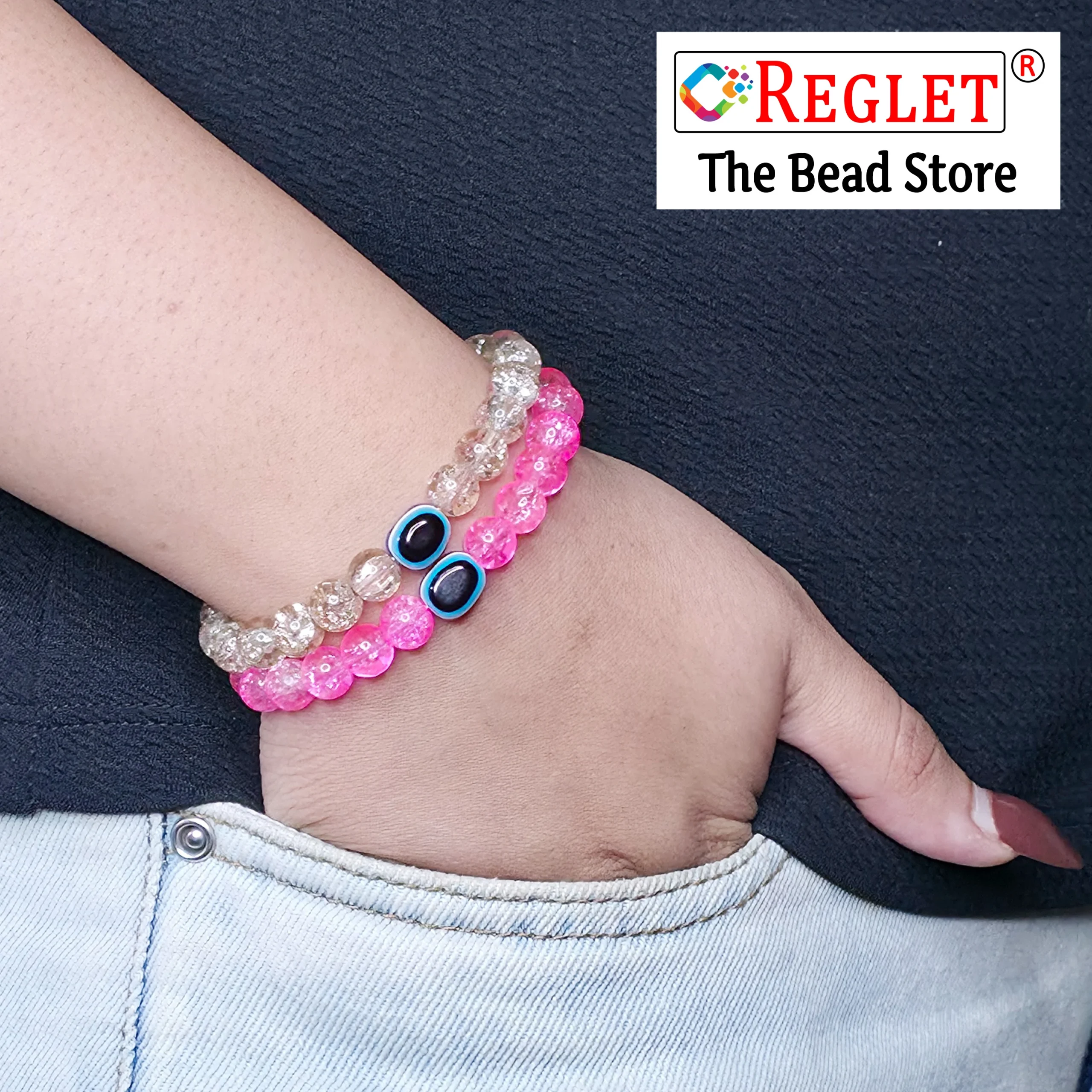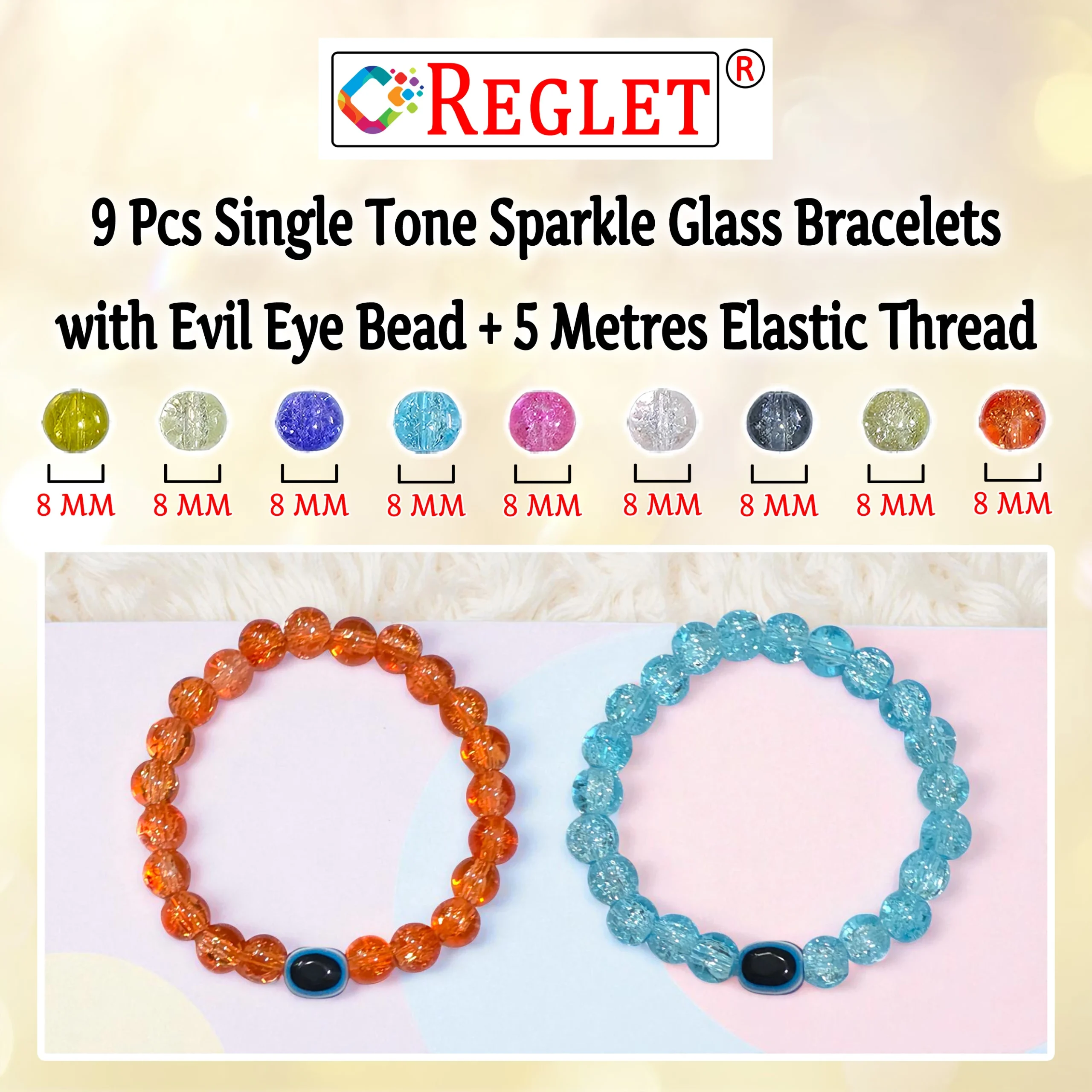 The REGLET Pack of 9 Single Tone Sparkle Glass Bead Bracelets with Evil Eye Bead is a perfect mix of elegance, charm, and meaning. โจ Each bracelet features premium 8mm sparkle glass beads in single-tone shades, offering 9 different colours to complement your style. ๐จ Highlighted with an Evil Eye bead, these bracelets are not just stylish but also symbolic, believed to protect the wearer from negativity and attract good fortune. ๐ Their stretchable elastic design ensures a secure yet comfortable fit for most wrist sizes, making them ideal for everyday wear, casual outings, or festive occasions. ๐งต To add more value, this set also includes 5 metres of strong stretch wire, allowing you to customise, repair, or create additional bracelets with ease. ๐ Whether as a personal fashion accessory or a thoughtful gift, this bracelet set is a must-have for jewellery lovers.