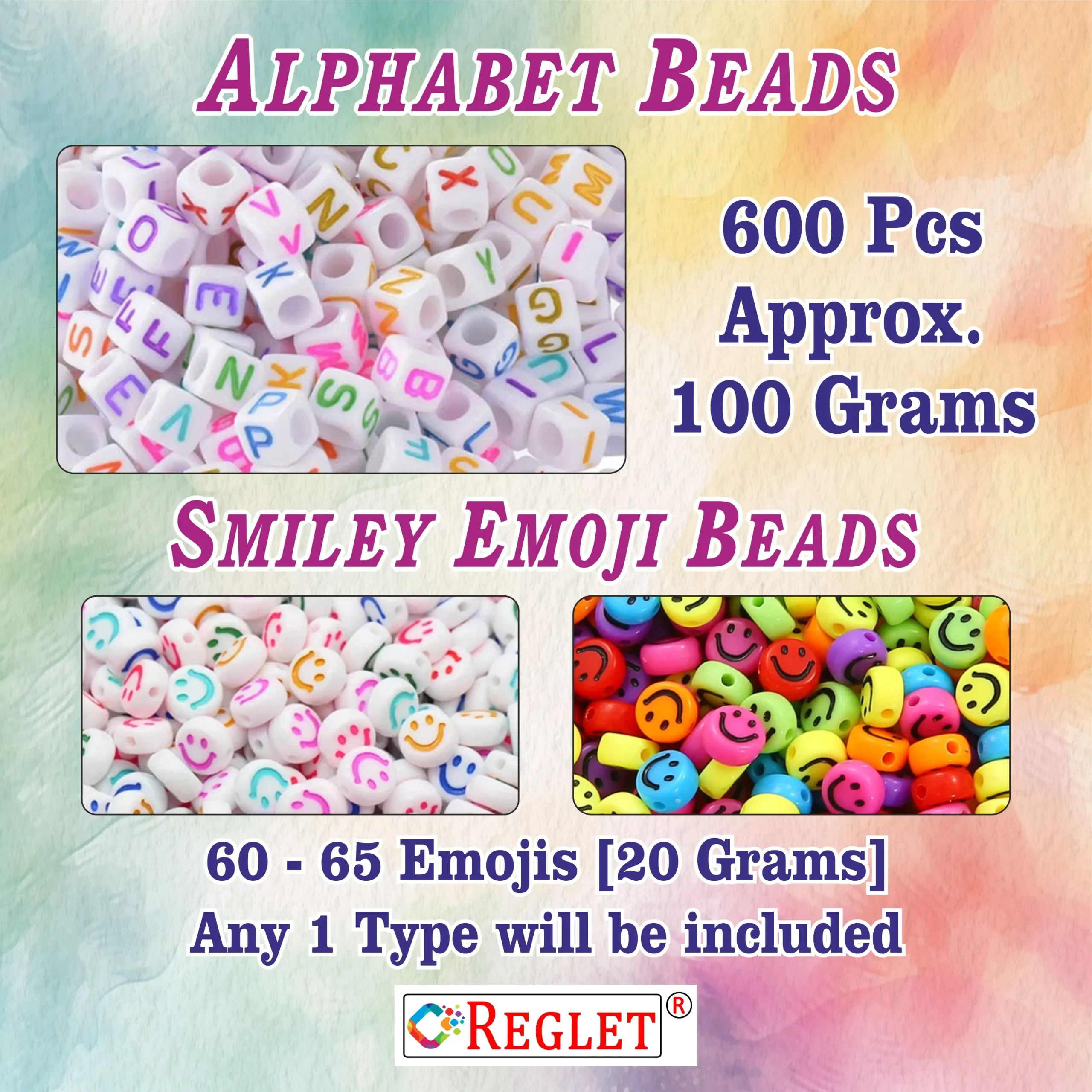 Create your own stylish accessories with the REGLET 600 White Alphabet Beads + 65 Emoji Beads Kit. This 120g jewellery-making set includes durable acrylic letter beads, cute emoji beads, and 5m elastic wire for easy stringing. Perfect for making custom bracelets, necklaces, and keychains, this kit combines fun and learningโboosting creativity, coordination, and design skills. A great gift for kids, hobbyists, and craft lovers to enjoy endless DIY possibilities with colourful, high-quality beads!