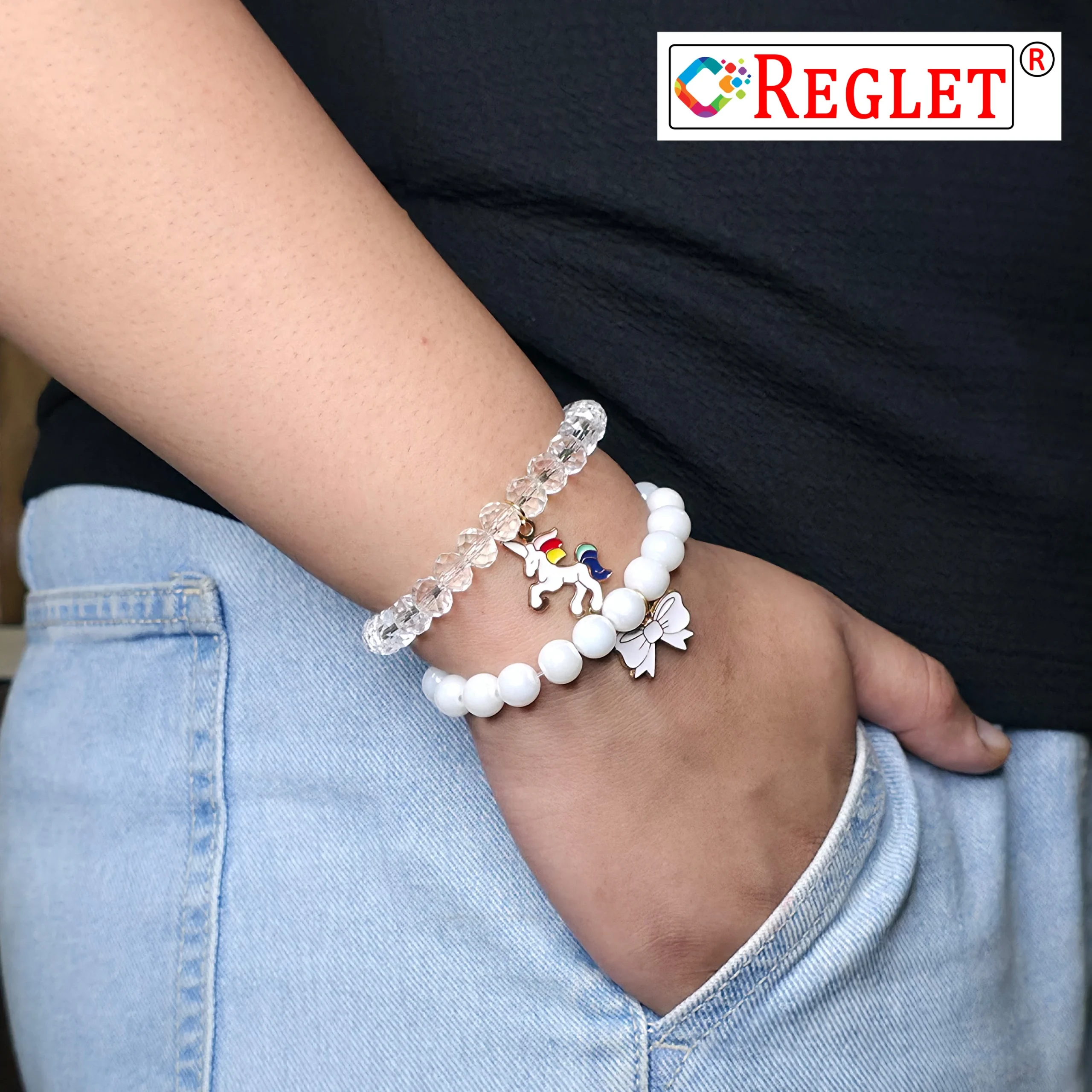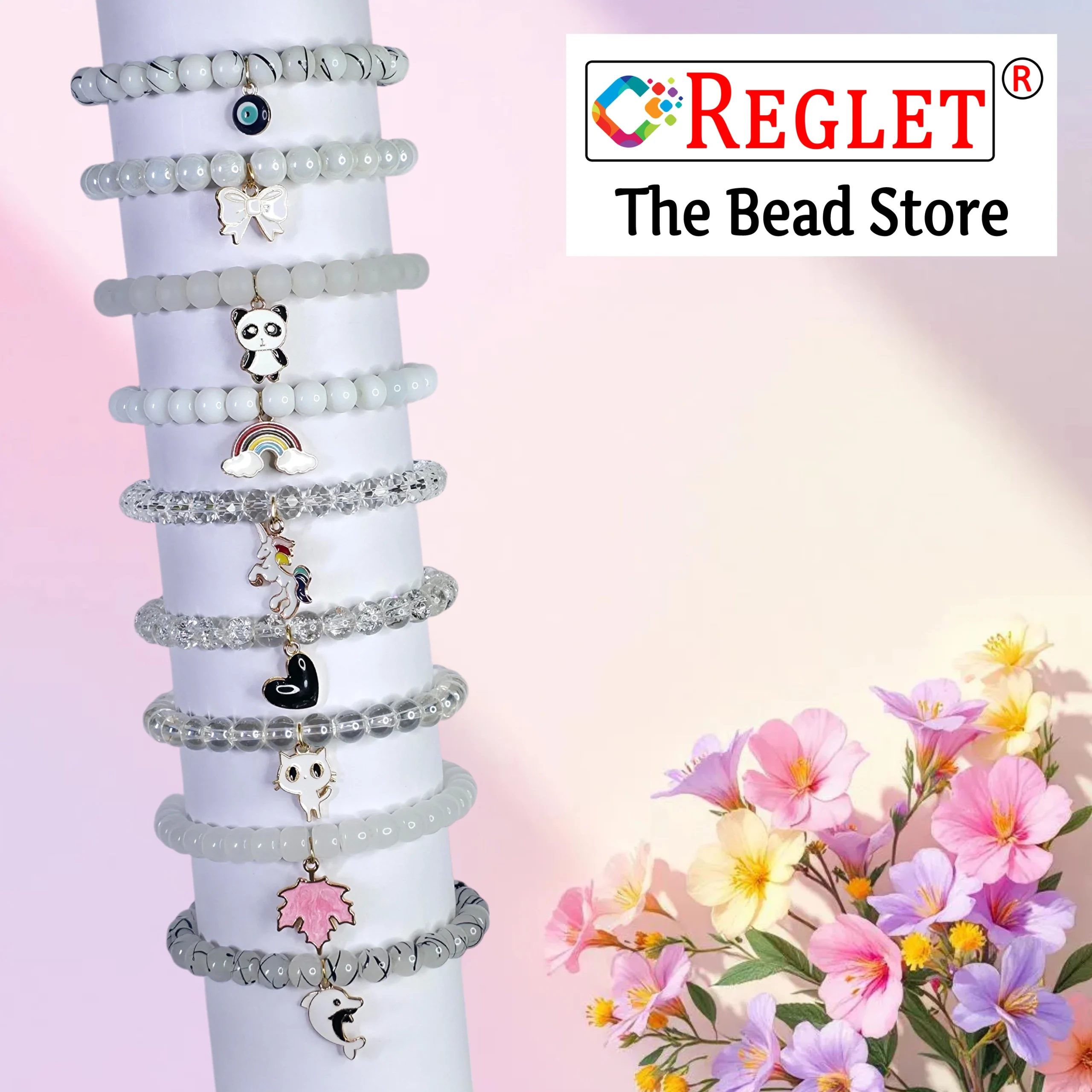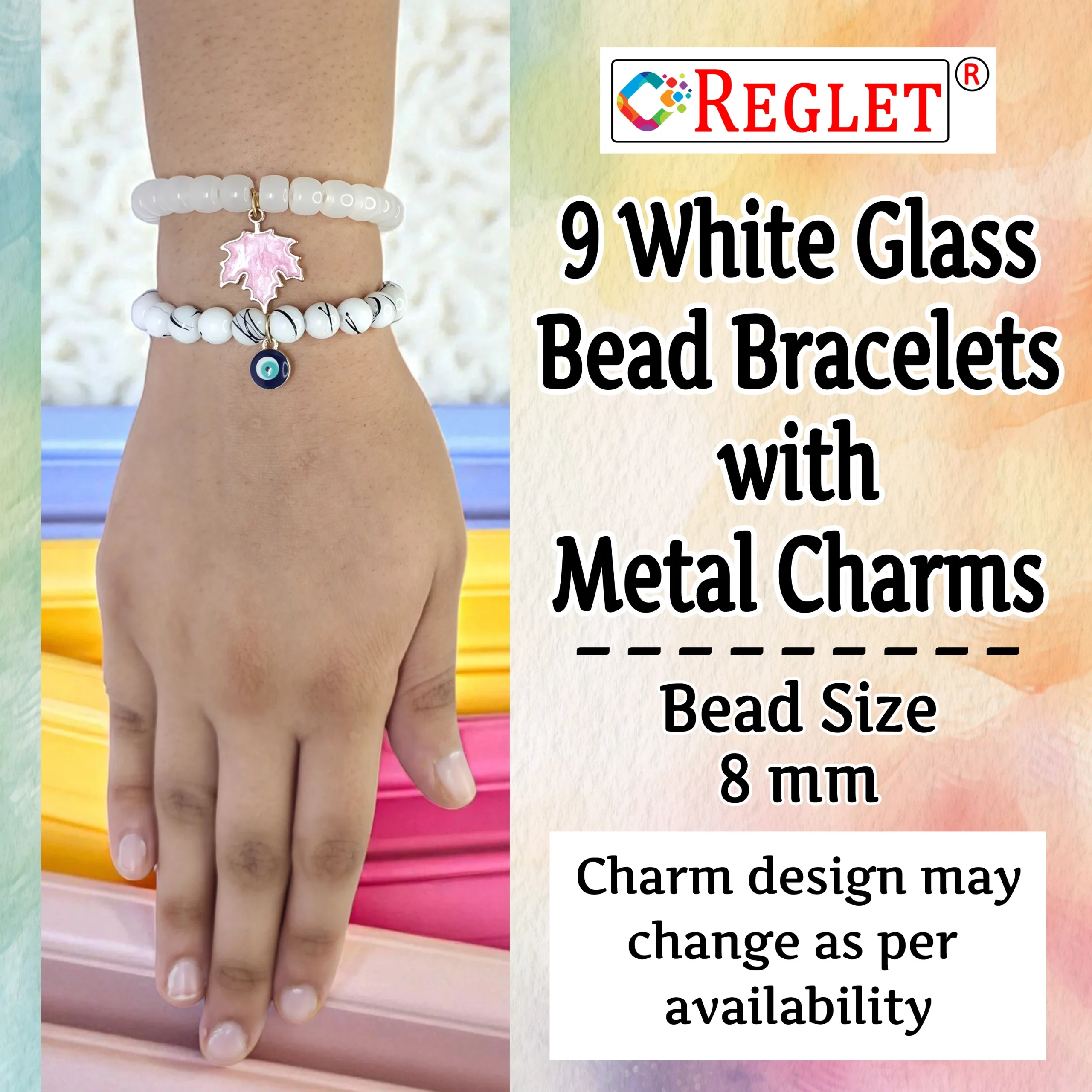 [ PACKAGE INCLUDES ] – This set contains 9 Adjustable White Glass Bead Bracelets with 10 Pcs Metal Charms. The Size of Glas beads is 8mm. Adjustable size: Pack contains 5 metres elastic cord, allowing you to easily adjust the bracelet to fit your wrist comfortably. Elegant White Glass Bracelets with Charms: These stylish bracelets feature glossy White glass beads paired with detailed metal charms, perfect for adding a bold and sophisticated touch to your everyday or party look. Great for Jewellery Making Kits: Ideal for DIY jewellery making, these bracelets can be worn as-is or used to inspire your own creations. A perfect choice for personal use or jewellery kits for beginners and hobbyists. Perfect Gift for All Occasions: A thoughtful and trendy gift for girls, women, and teens—ideal for birthdays, festivals, or daily wear. Stack them or wear solo for a chic fashion statement.